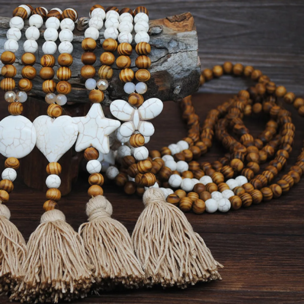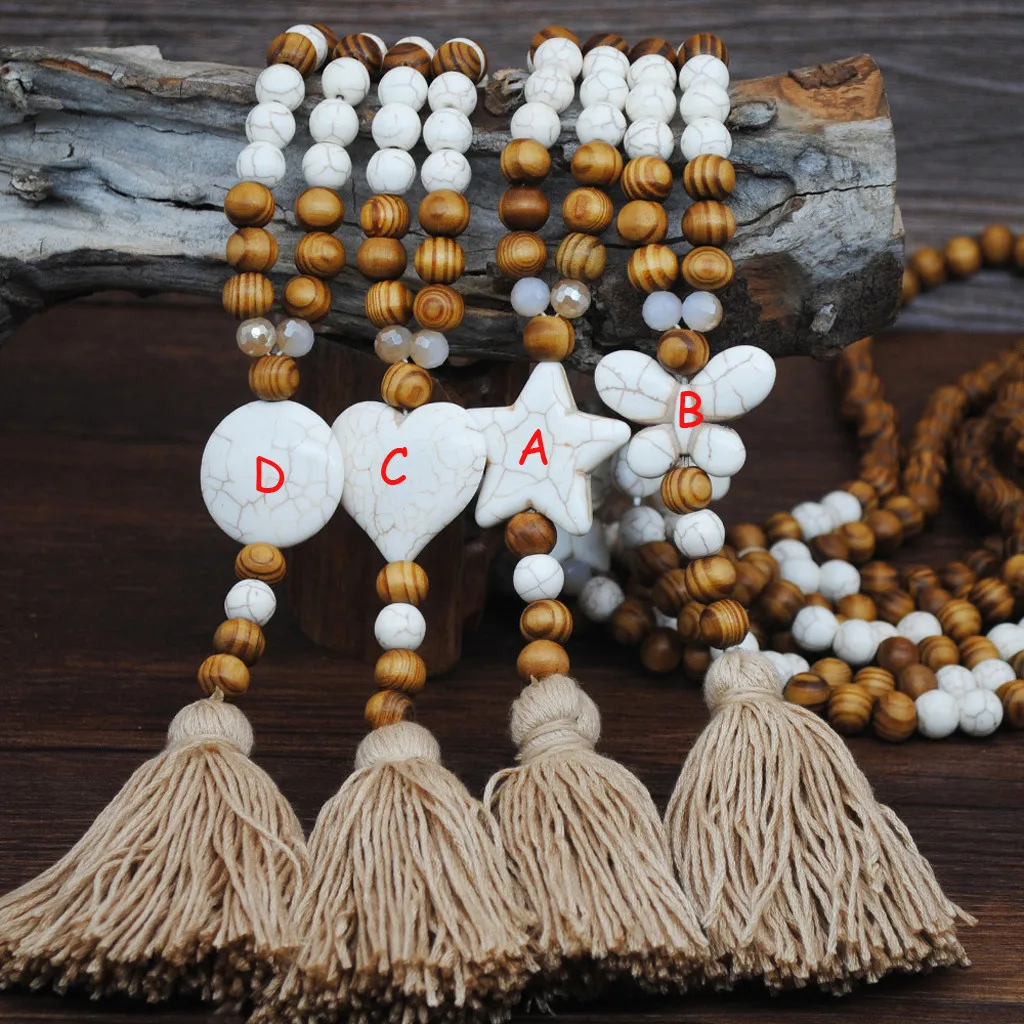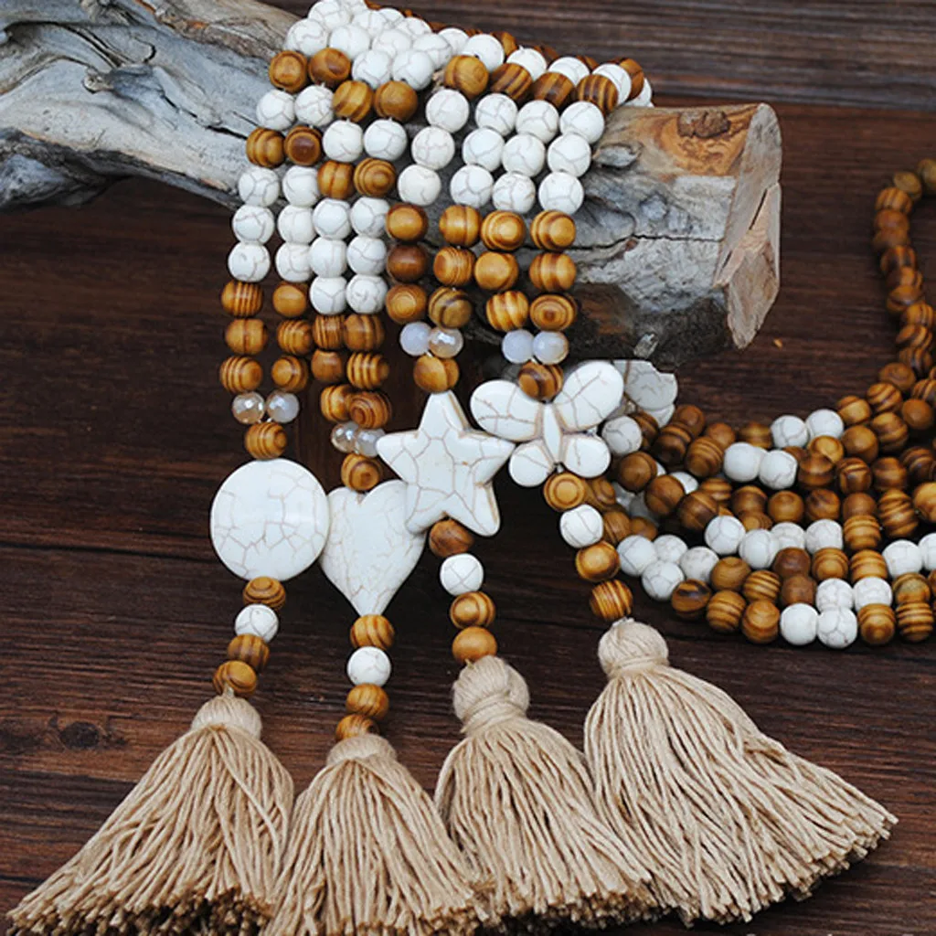 Женская кисточкой ожерелье из деревянных бусин кулон богемная цепочка Ювелирные изделия Аксессуары