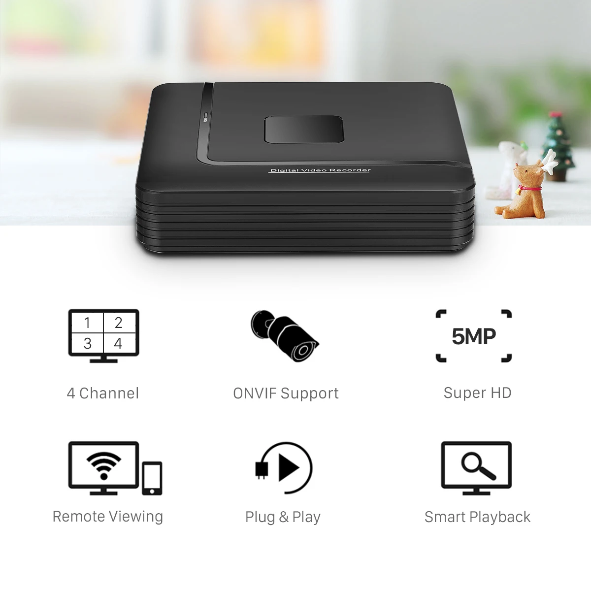 Поддержка Макс 4 шт 5MP PoE камеры Вы также можете переключить канал на 8 шт 4MP, которые поддерживают Макс 4 шт PoE камеры 4MP и дополнительные 4 шт 4MP ONVIF камеры.