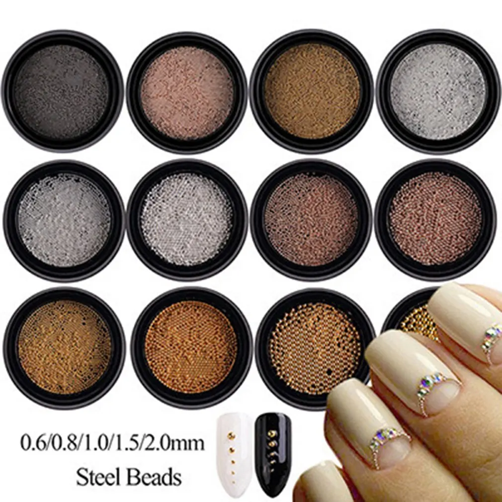 3D микро стальный бисер смешанный цвет украшения для дизайна ногтей мини маленькая Икра Diy амулеты маникюрный аксессуар инструмент для ногтей