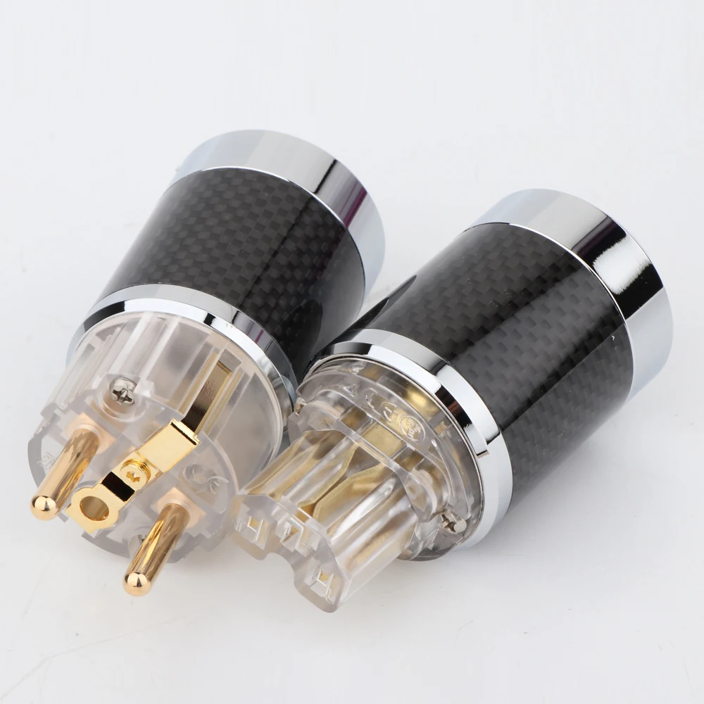 Пара WCF2-TEG из углеродного волокна позолоченный ЕС Schuko штекер IEC Женский Разъем DIY сетевой кабель питания