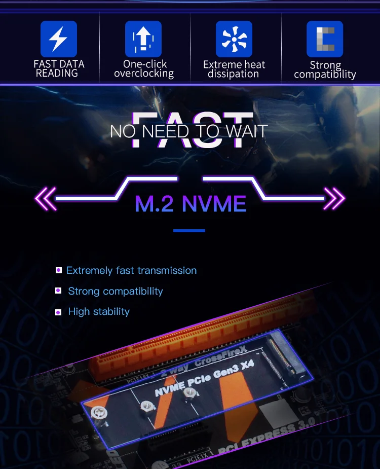 Поддержка M.2 NVME PCIE GEN3 X 4 SSD.