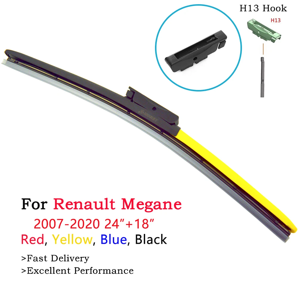 Цветные бескаркасные гибридные щетки стеклоочистителя для Renault Megane аксессуары 2002-2020 24 "+ 18" красный синий желтый бескостные Стеклоочистители