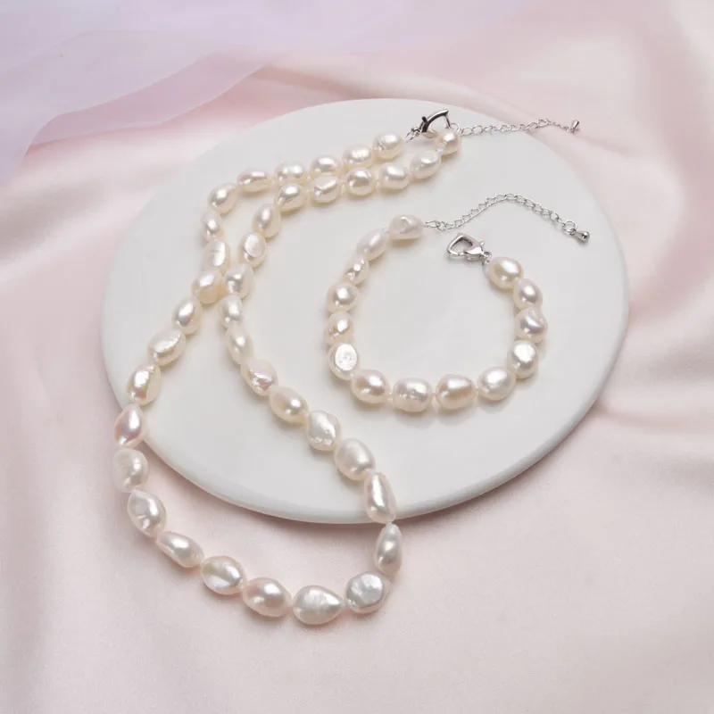 Бренд: ASHIQI Тип камня: натуральный пресноводный жемчуг Общий вес: около 36,5 г Форма жемчуга: барокко Цвет жемчуга: белый Жемчужный Блеск: очень хорошо Поверхность жемчуга: несколько недостатков Жемчуг Размеры: 8,5-9,5 мм Длина: 40 см/45 см/50 см Материал металла: медь-позолота Упаковка: Подарочная сумка