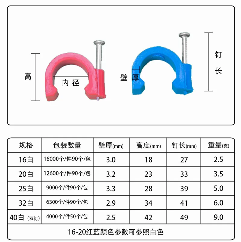 Материал защиты окружающей среды PE + гвоздь из высокоуглеродистой стали фиксированный общий внутренний провод фиксированный провод впрыска объем провода и кабеля с технологией впрыска/больше для некоторых фиксированных линий кабельной трубы, водопровода и т. Д.