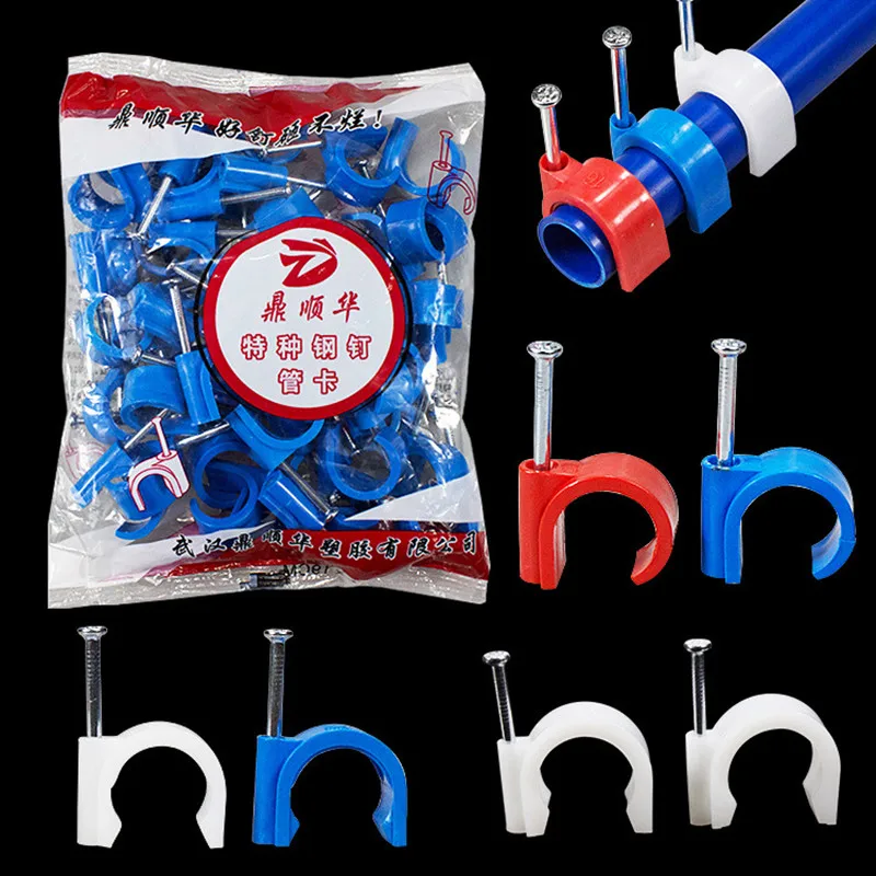 48 шт. пвх хомут для труб 16-20 мм круглый электрик трубка поддержка крюк нейлоновая сталь гвозди линия Кабельные зажимы Провода Стены Фиксированный держатель