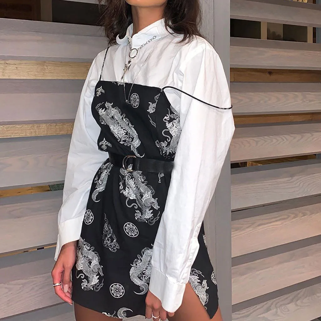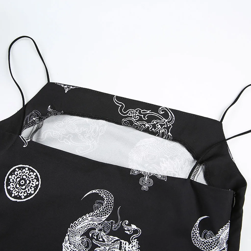 Женское платье с открытой спиной, на бретельках, с принтом дракона