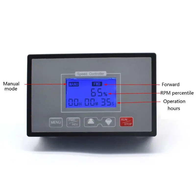 ЖК-экран с подсветкой, может отображать время работы, процент скорости вращения, текущий режим, вращение вперед, состояние обратного вращения