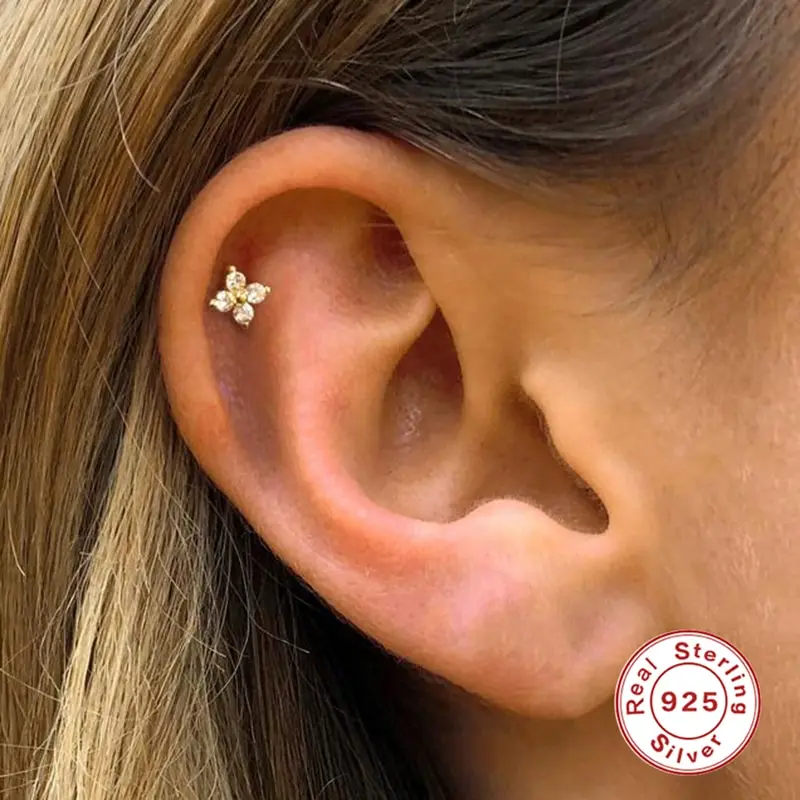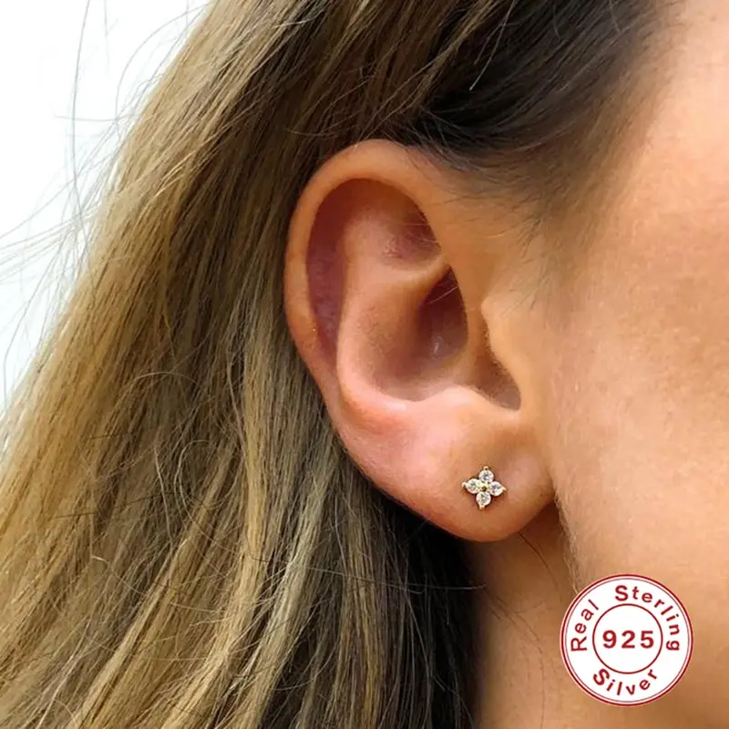 S925 Sterling Silver Luxury Korean Cute Bling Crystal Floral Stud Earrings for Women Men Earring Charm Jewelry Accessories