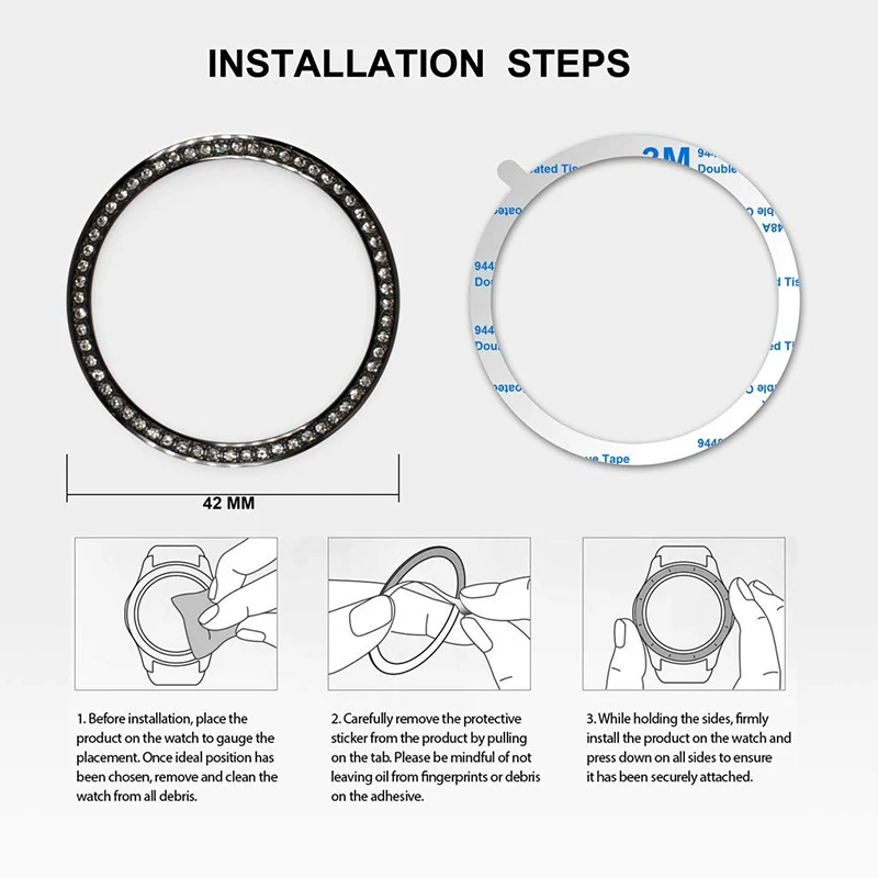 1. To Be The Special: Matte metal bezel rings makes an outstanding Galaxy Watch accessories.It is not only a stylish accents,but also an upgrade customization.High quality plated bezel for Samsung Galaxy Watch 42mm/46mm Smartwatch, makes your watch looks more high-end and durable, 3 patterns/3colors to choose. 2. Excellent Craftsmanship: Highly polished with excellent craftsmanship to form premium quality stainless steel watch bezel ring,not only makes your watch look and feel more classy and expensive,but also provides a layer of protection. 3. Precise Arc: According to the original watch radian custom, and ensure the coincidence degree of the product installation.The attachment surface with 3M adhesive tape, which has strong adhesion and it does not hurt paint, not easy to fall off. 4. Your Best Choice: The bezel ring gives your galaxy watch a different new look,whether in business activities or in daily life, wear such a stylish and exquisite bezel, to add you a different sense of fashion on any occasion. NOTE: 42mm fit samsung galaxy watch 42mm and samsung gear sport watch 46mm fit samsung galaxy watch 46mm and samsung galaxy Gear S3 watch