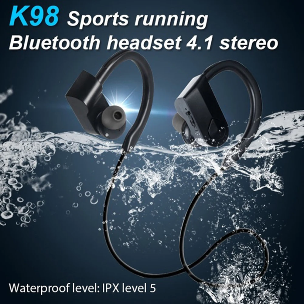 K98 водонепроницаемые наушники, ударные басы, стерео, Беспроводная Bluetooth спортивная гарнитура, наушники, черный, красный цвет