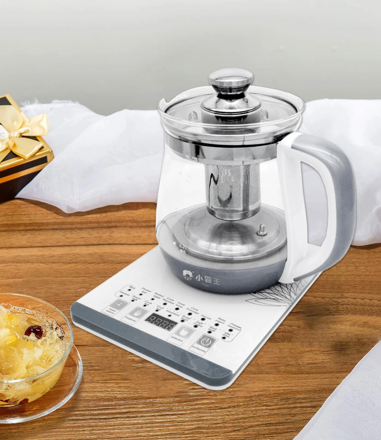 Электрический чайник имеет 16 интеллектуальных встроенных программ. Идеально подходит для приготовления ароматного чая, зеленого чая, белого чая, улун чая, черного чая или кофе; Это также может приготовления супа, овсяной муки, лапши, кипящей воды и яиц, согревающее молоко, дезинфекция.