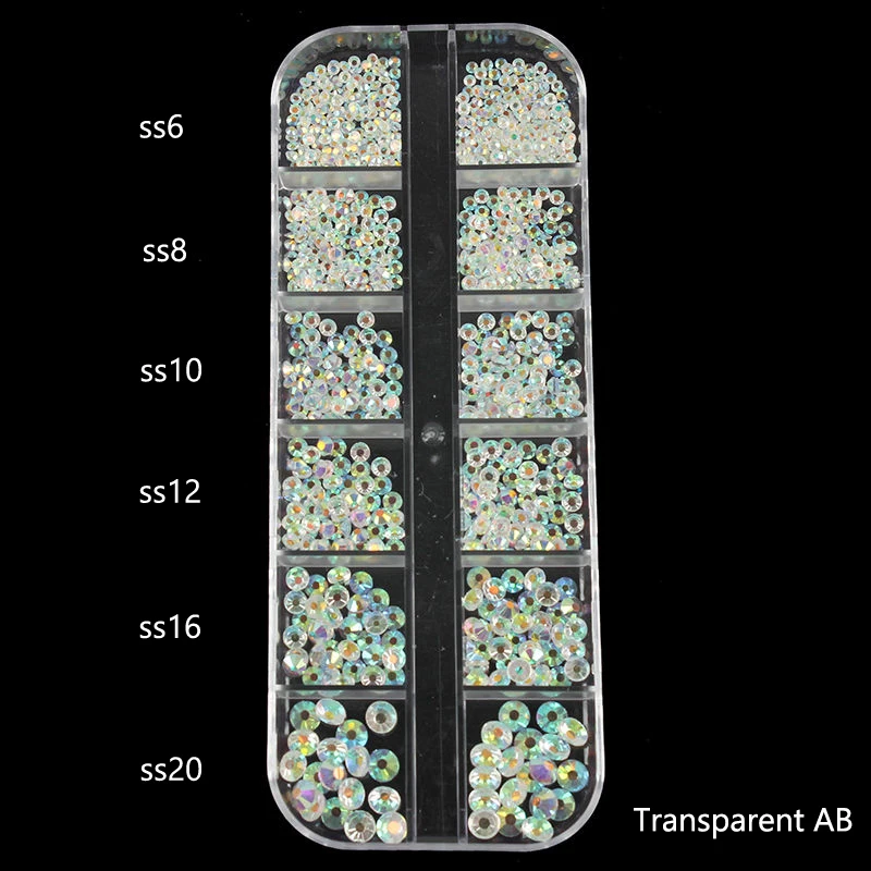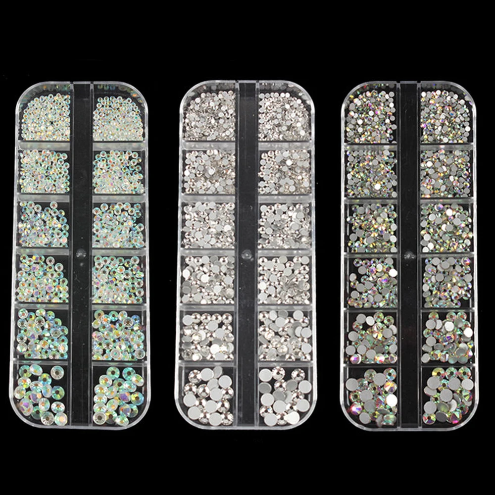 1 коробка, многоразмерные кристаллы AB, 3D украшения для ногтей, драгоценные камни для ногтей, стразы, украшения для ногтей