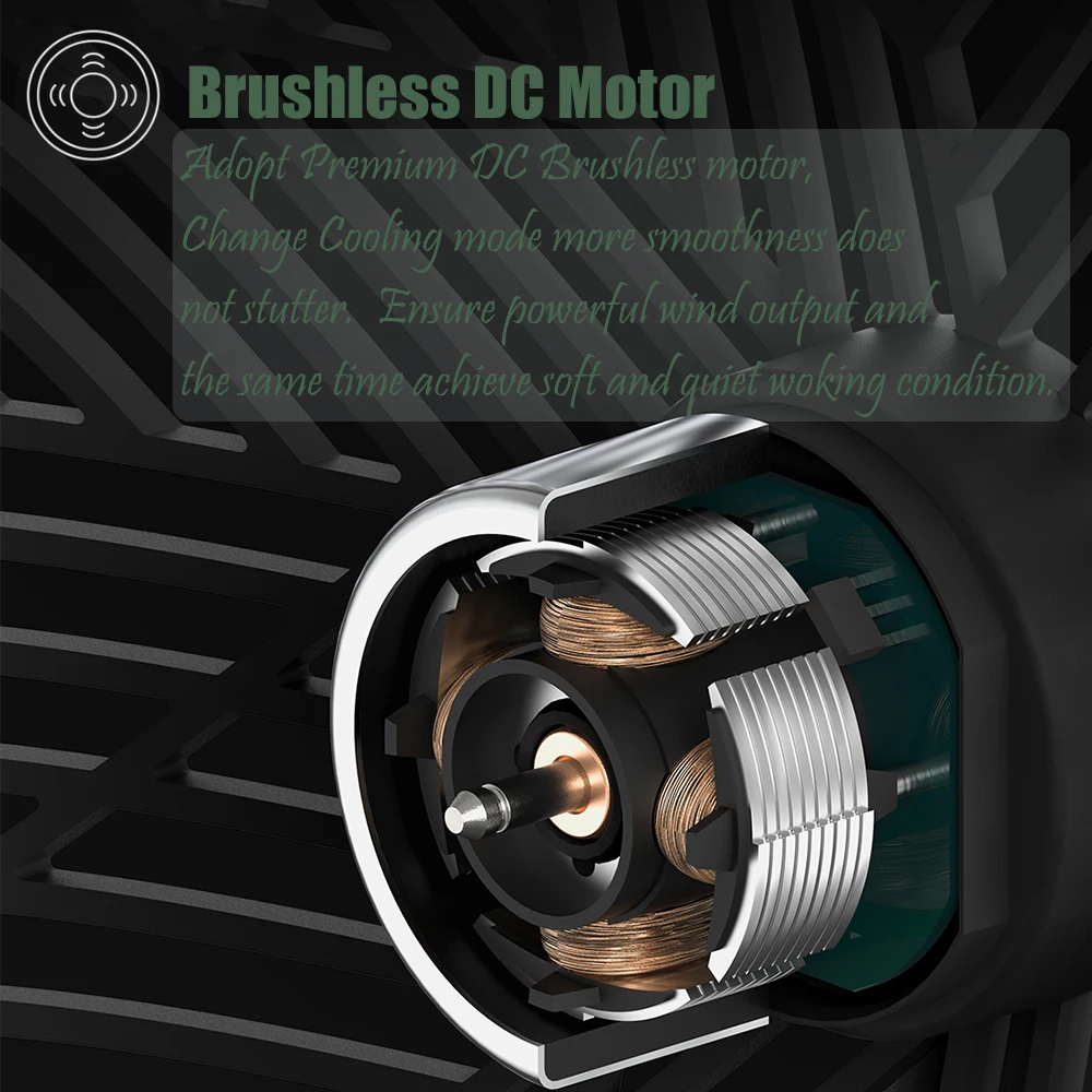 Бесщеточный двигатель постоянного тока Ультра тихий--- Используйте бесщеточный двигатель постоянного тока премиум класса, меняйте режим охлаждения, больше гладкости не заикается. Обеспечить мощный выход ветра и в то же время достичь мягкого и спокойного состояния.
