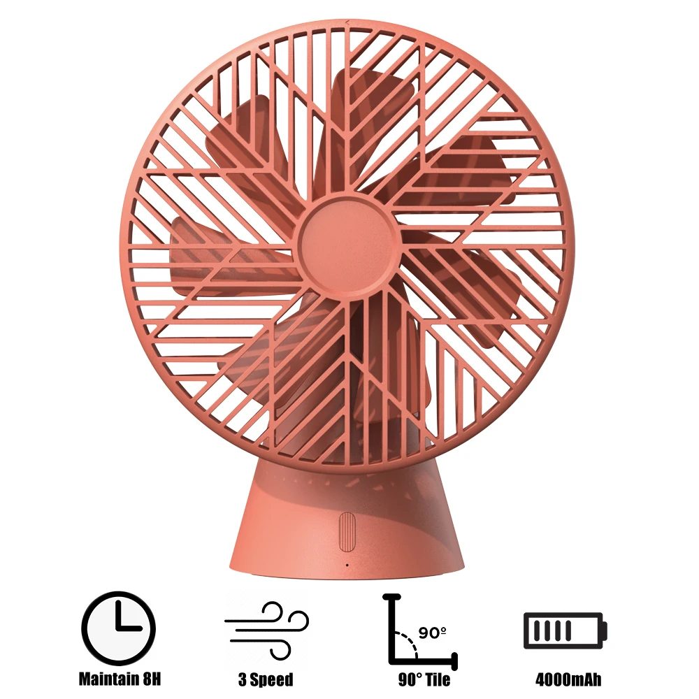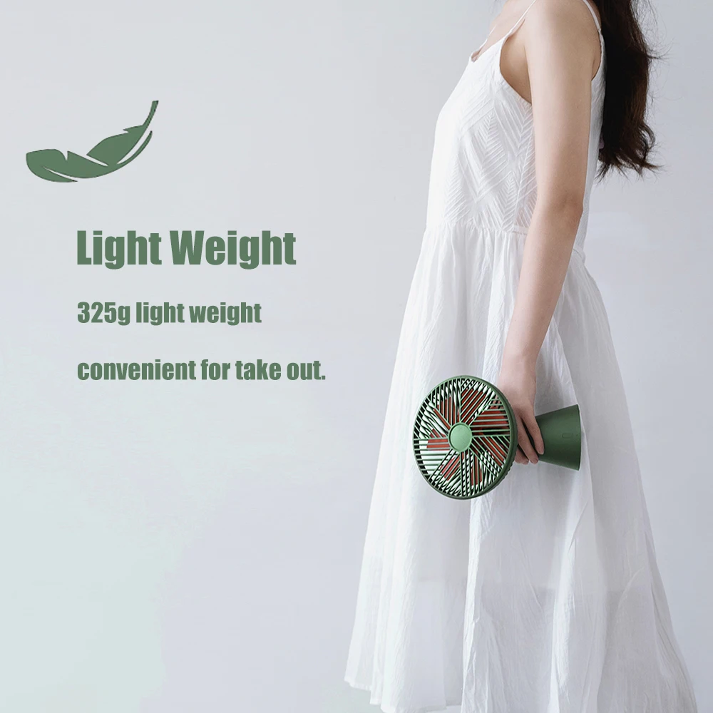 Этот портативный вентилятор может удовлетворить все ваши требования к охлаждению и соответствовать любым условиям. Чрезвычайно большая емкость аккумулятора и пониженная мощность, после полной зарядки он может продолжать работать 13 часов, никогда не беспокойтесь, выходя из строя. Другие преимущества, 90 ° поворотный, 7-лезвия, 3 скорости охлаждения, 325g светильник, вес, удобный для извлечения.
