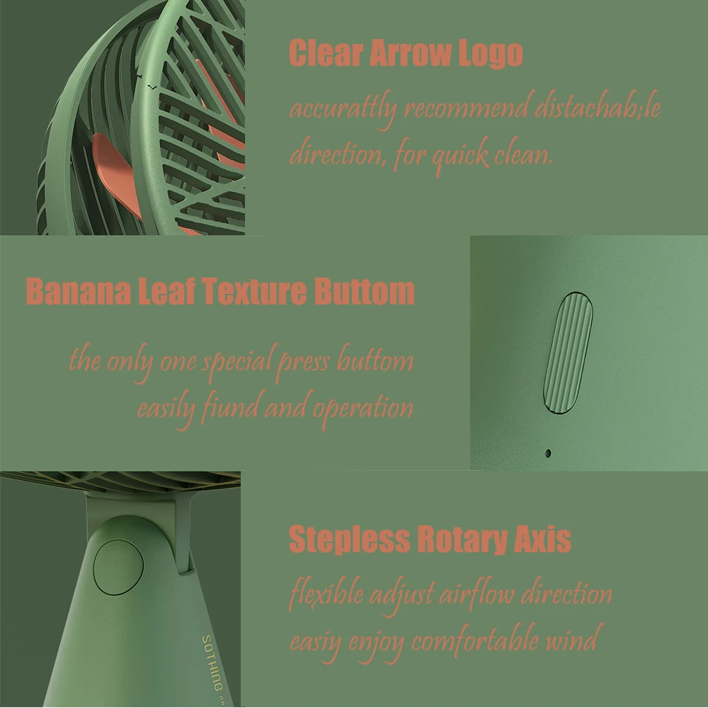 Легко чистить и удобно снимать--- Передняя крышка легко снимается для очистки, своевременная Чистка может продлить время использования вентилятора, а также сохранить ветер естественным и чистым. Мини-размер + светильник Weigt + USB зарядка, это лучший выбор для использования как внутри, так и на улице.