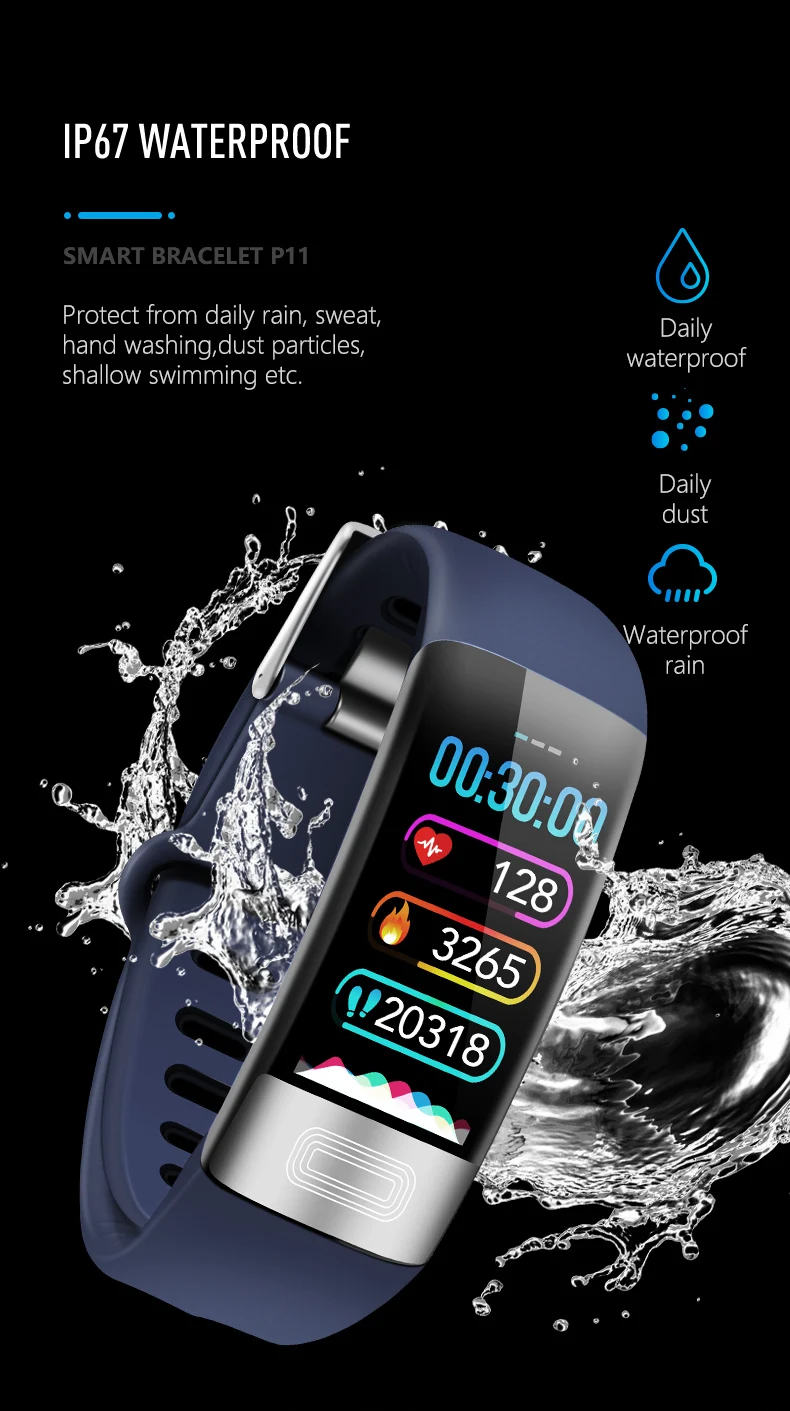 Новейший смарт-браслет P11, ЭКГ, Смарт-часы, пульсометр, PPG, умный Браслет, кровяное давление, водонепроницаемый браслет