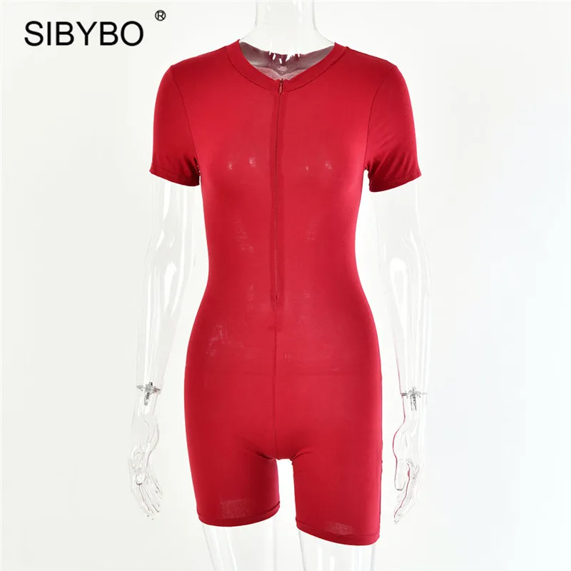 Черта:Женский комбинезон с длинным рукавом SIBYBO, Повседневный хлопковый комбинезон с круглым вырезом, однотонный сексуальный комбинезон