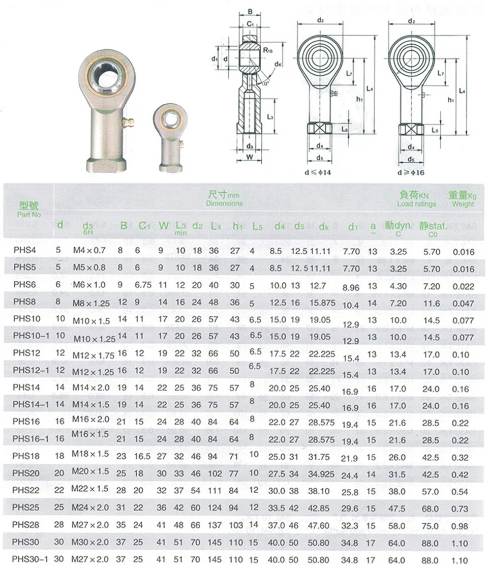 Наружные Резьбовые концы стержня, шарнирные подшипники