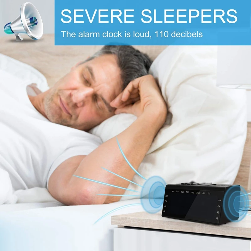 Perfect Alarm Clock for Heavy Sleeper The Alarm clock volume has 16 levels up to 120 decibels,it is perfect for the heavy sleeper,you will have to get up to work.