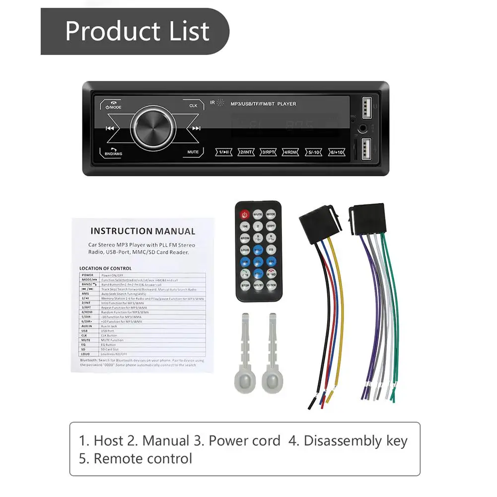 Особенности: Функция: FM-радио, Bluetooth, звонки в режиме громкой связи, mp3-плеер, AUX, Двойная зарядка через USB, дизайн с полным сенсорным экраном