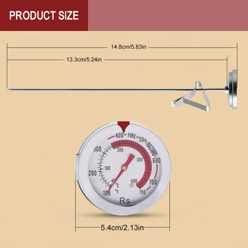 Легко читаемый большой циферблат измеряет температуру от 40 °C до 400 °C и от 100 °F до 750 °F.