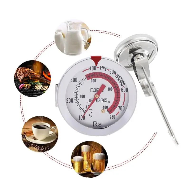 Термометр для мяса из нержавеющей стали имеет прочный Длинный зонд для вставки непосредственно в мясо и птичьи суставы для измерения внутренней температуры.