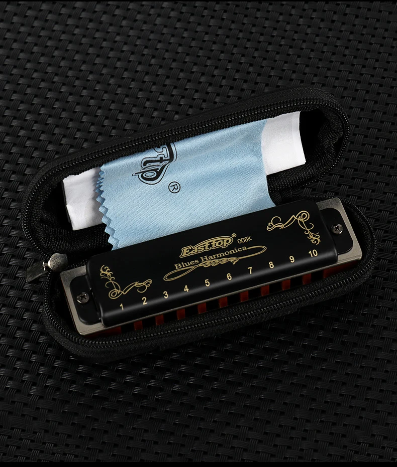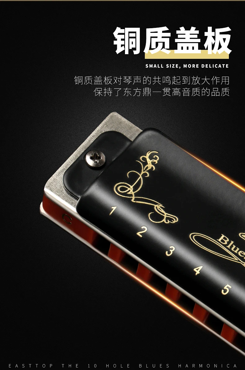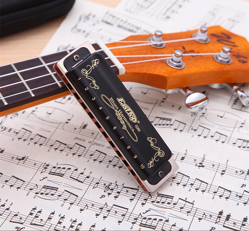 Название: Easttop 10 hole blues harmonica Бренд: Easttop Размер: около 100 мм * 28 мм * 18 мм Вес: около 83 г Базовая пластина: медное покрытие Модель: T008K Цвет: черный Тон: A,B,C,D,E,F,G и другие ключи (это только цена гармоники)
