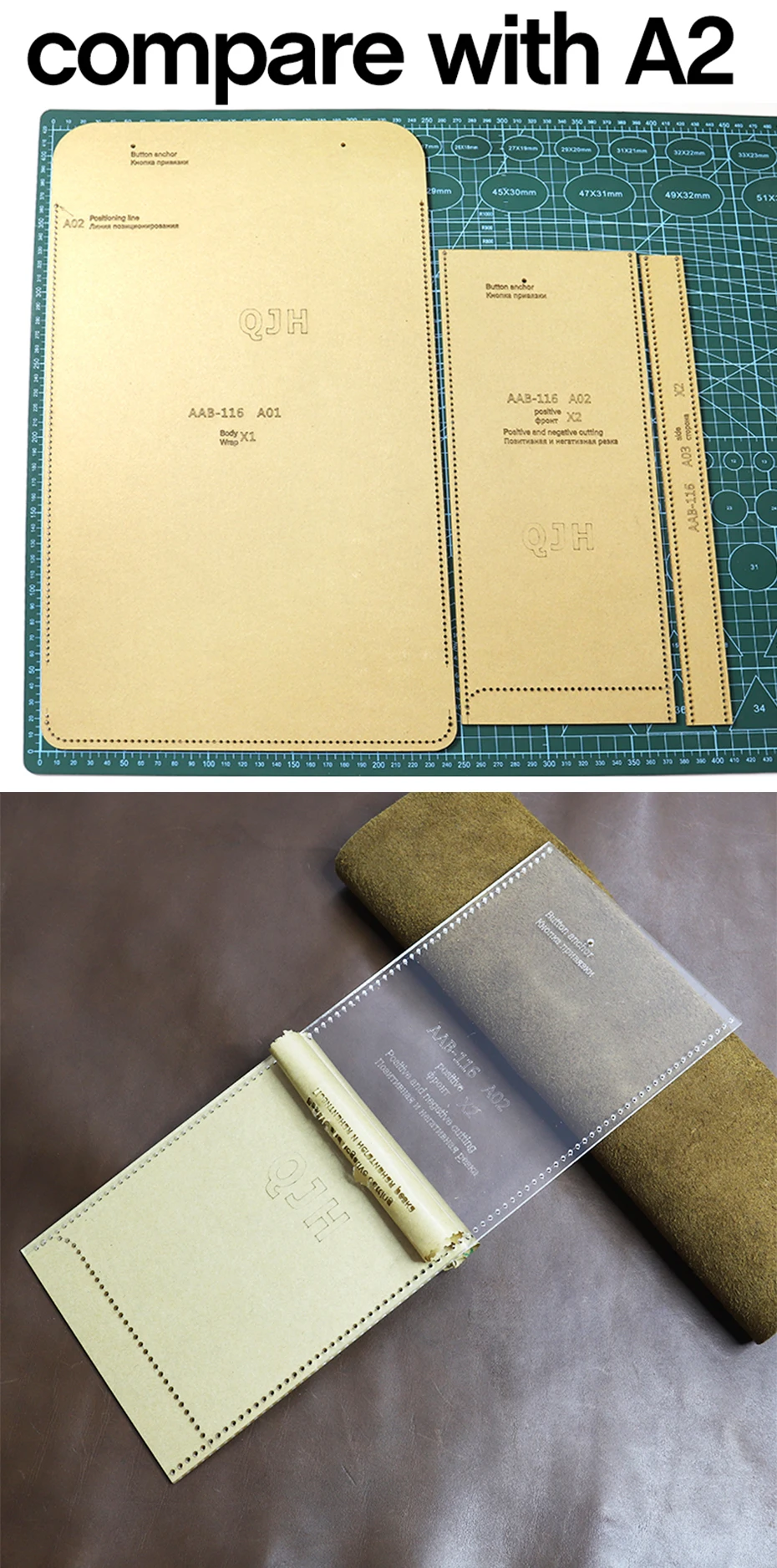* Стиль отделки: Сумка-конверт * Размер готового продукта: 24 см * 31 см * 2 см * Материал шаблона: акрил, крафт-бумага * Цвет: (как показано на фотографии) * Акриловые и крафт-бумажные шаблоны отлично подходят для любителей кожаных изделий ручной работы. * Идеальный инструмент для изготовления простой кожаной сумки. ----- Этот товар просто акриловый и крафт-бумажный инструмент, а не кожаный готовый продукт.