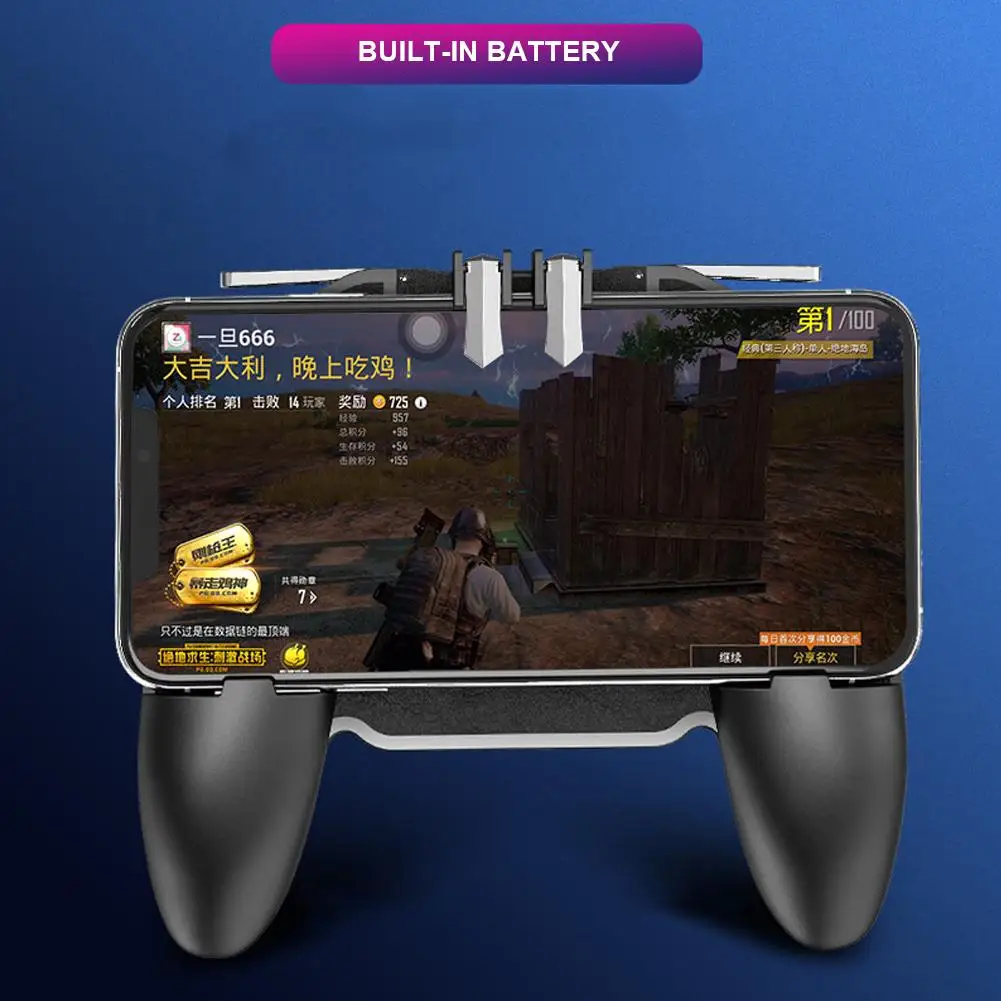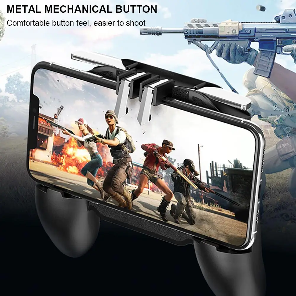 Features:1. Upgraded 4 in 1 Game Controller: Combines game triggers, gamepads, phone holder, and phone cooling fans.2. with 2000mAh Cooling Fan: The cooling fan prevents the phone from overheating for a long time while enjoying the game, prolonging the service life of the phone and battery.3. Suitable Model: The gaming grip is suitable for all models of 4-6.5-inch mobile phones, for PUBG Mobile, etc. As long as the game allows custom and drag keys, you can play the best guest mobile game controller.4. Comfortable Handle: Paly long-term game will not fatigue with the comfortable handle. The controller features alloy trigger, fire while moving, 4 fingers operate at the same time, faster than the enemy, giving you a better gaming experience.5. 180° Flip Touch Head: The rotatable touch head for easy installation of the phone and setting buttons. The high conductive silicone head is smaller and more sensitive than other grips, it won't obscure the game map.Specifications:1. Name: Mobile Game Controller2. Applicable games: for PUBG Mobile tec. As long as the game allows custom and drag keys, you can play the best guest mobile game controller.3. Size: about 155mm * 134mm * 45mm/6.10*5.28*1.77in4. Suitable mobile phone size: about 4-6.5 inch (mobile phone width: about 70-100mm/2.76-3.94in)5. Color: blackPacking List: 1*Mobile Game Controller