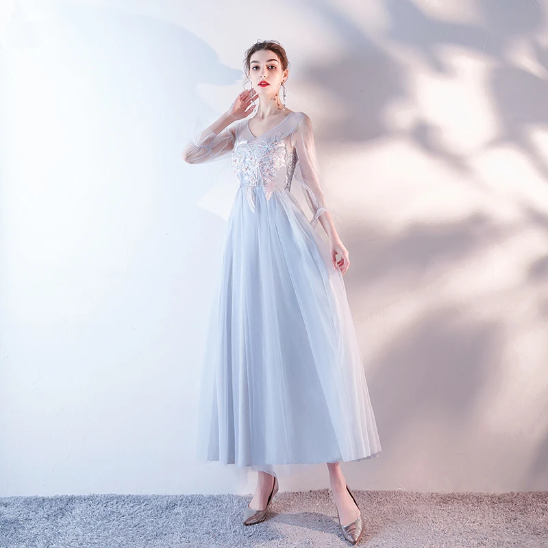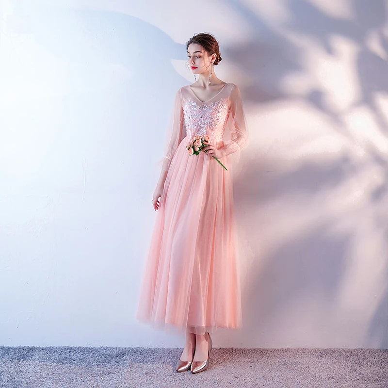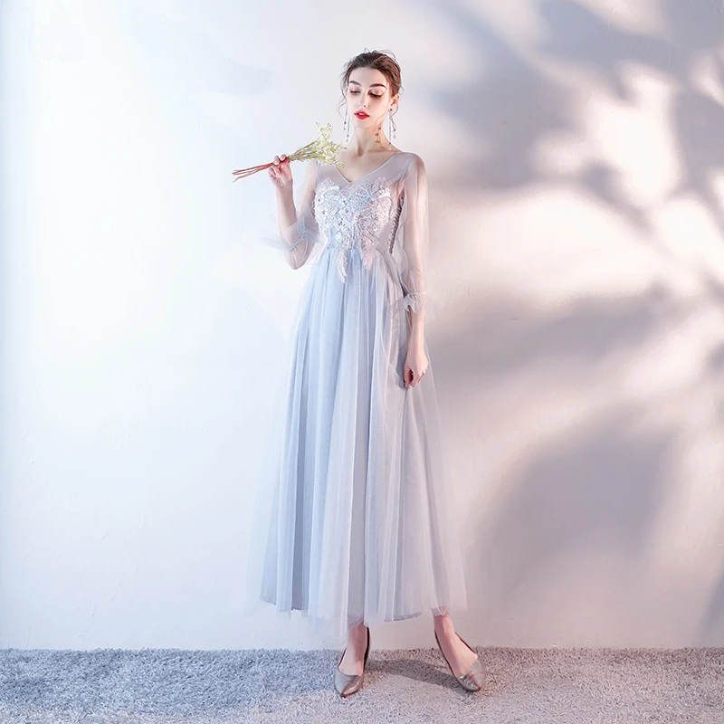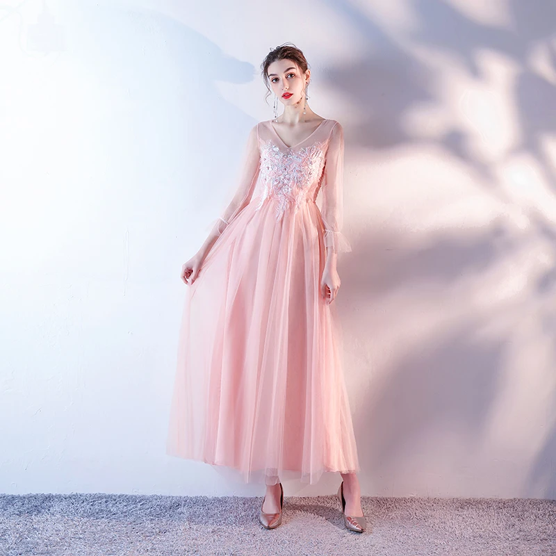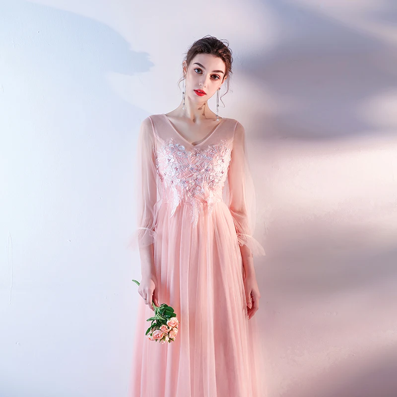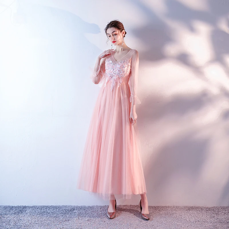 M049 2020 невесты гостей Длинные розовые серые вечерние платья