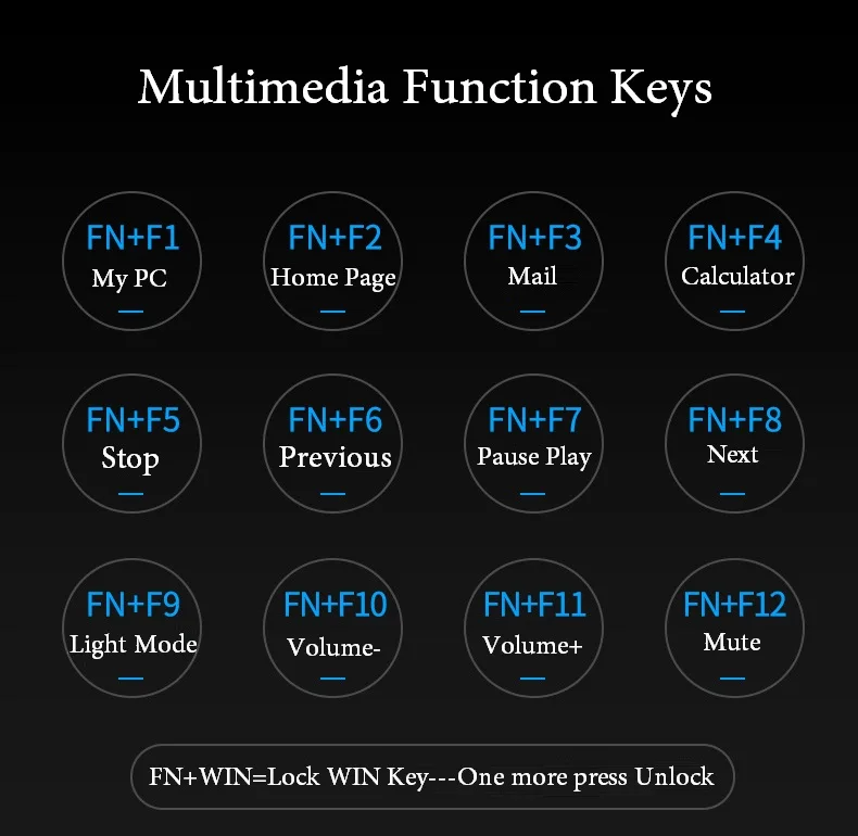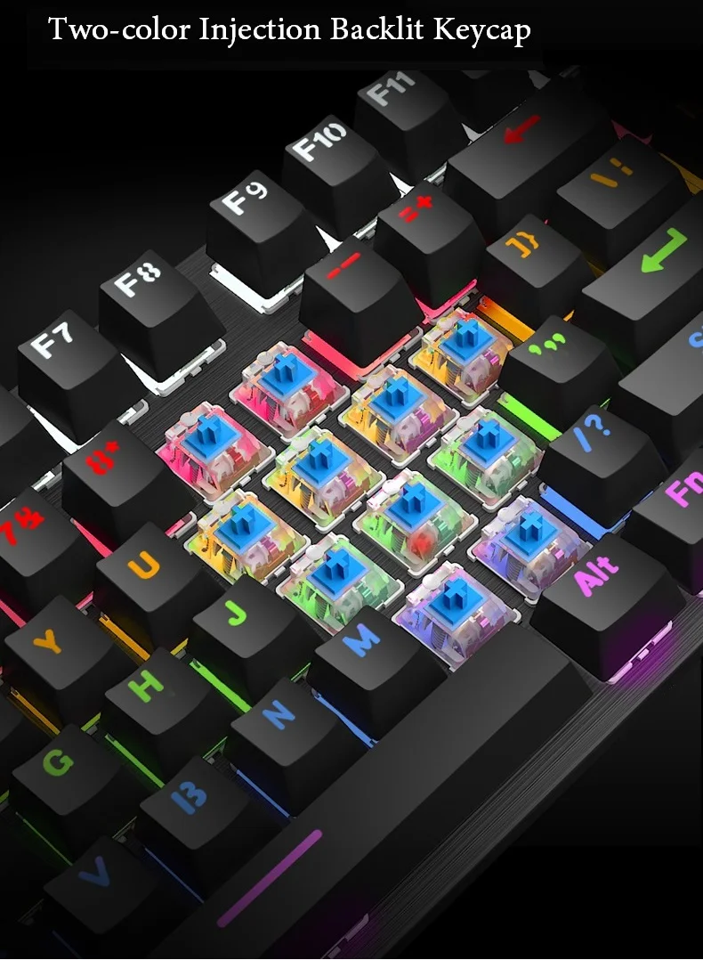 Keyboard Type: Mechanical Gaming Keyboard Connection: 2.4GHz Wireless Keyboard Axis: Blue/Black axis Key Number: 104keys Key Life: 5 million times Panel material: Metal