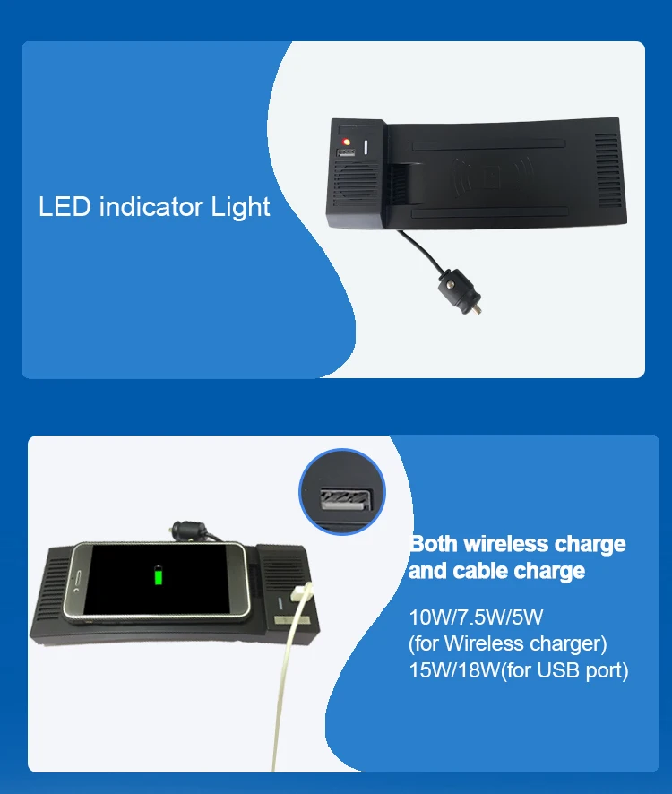 Fits for below Vehicles : For Audi A6 C7 A7 RS6 2012-2018 Output maximum power:15W Output maximum current :1A Operating temperature :-20-+70 Celsius Installation : Connect lighter plug directly Warranty: 1 year Function and advantages : 1.Pure Copper Coils 2.With Anti-slip rubber 3.With Indicator Light and USB port 4.With Lighter plug and air cooling Fits for the mobile with QI wireless charging function, if without such function, need to add wireless receiver Notes: 1:Better find auto repair store to install to avoid potential safety problems 2:Charging speed is according to different phone mode. 3:Make sure no magnet or metal on car charger 4:Keep safe driving, check mobile phone or charging platform is dangerous when driving 5:Ensure phone shell is ordinary thickness. Or that will affect charging if too thick without removing shell
