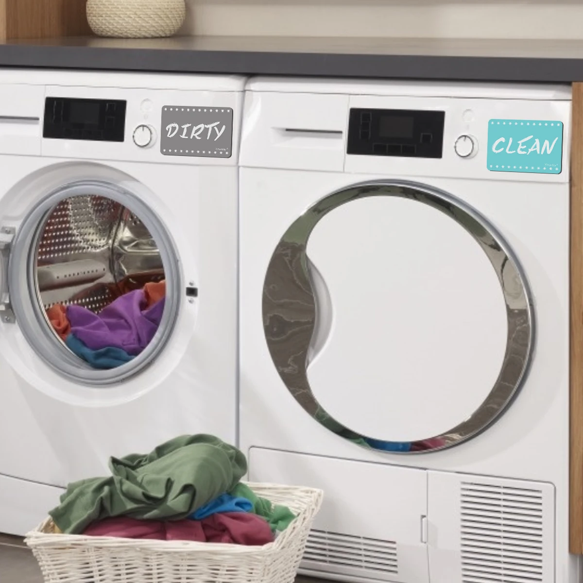 Простой в использовании-Просто прикрепите знак к посудомоечной машине и переверните магнитный знак, чтобы переключить «чистую» или «грязную» сторону, чтобы напомнить вам о состоянии посуды.