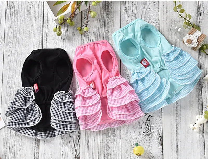Удобные охлаждающие платья для животных для маленьких собак, розовый, черный, синий, XS, XXL, маленькие, средние, клетчатые, костюмы для щенков, котов, для мопса, Померанцев
