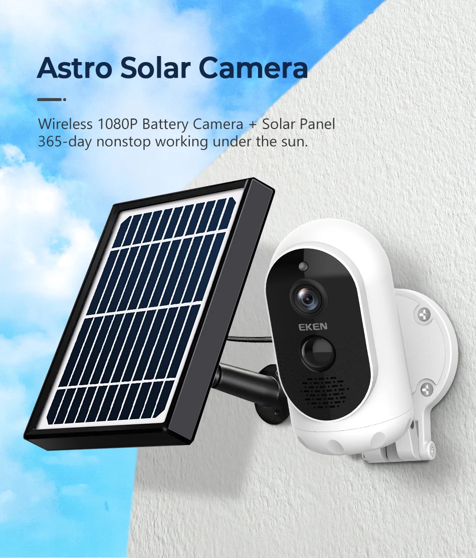 EKEN AStro 1080p батарея камера с солнечной панелью IP65 WIFI всепогодный детектор движения Беспроводная IP камера безопасности