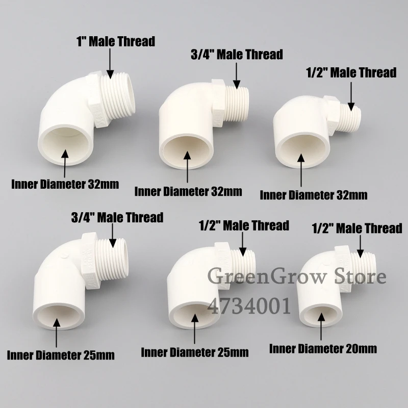 2 ~ 20 шт 20-32 мм до 1/2 "-1" равный налокотник 90 градусов ПВХ уменьшающий соединитель водоснабжения орошения сада аквариума фитинги
