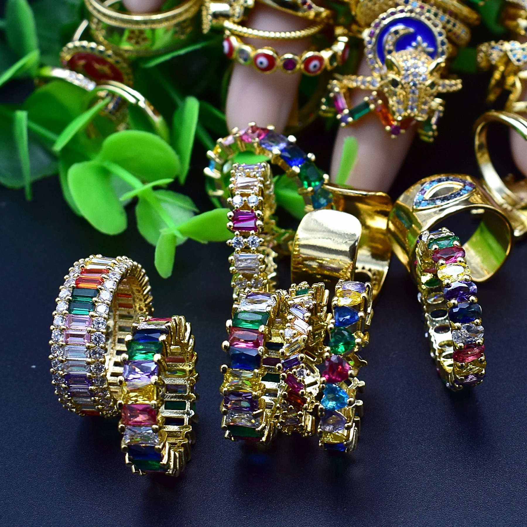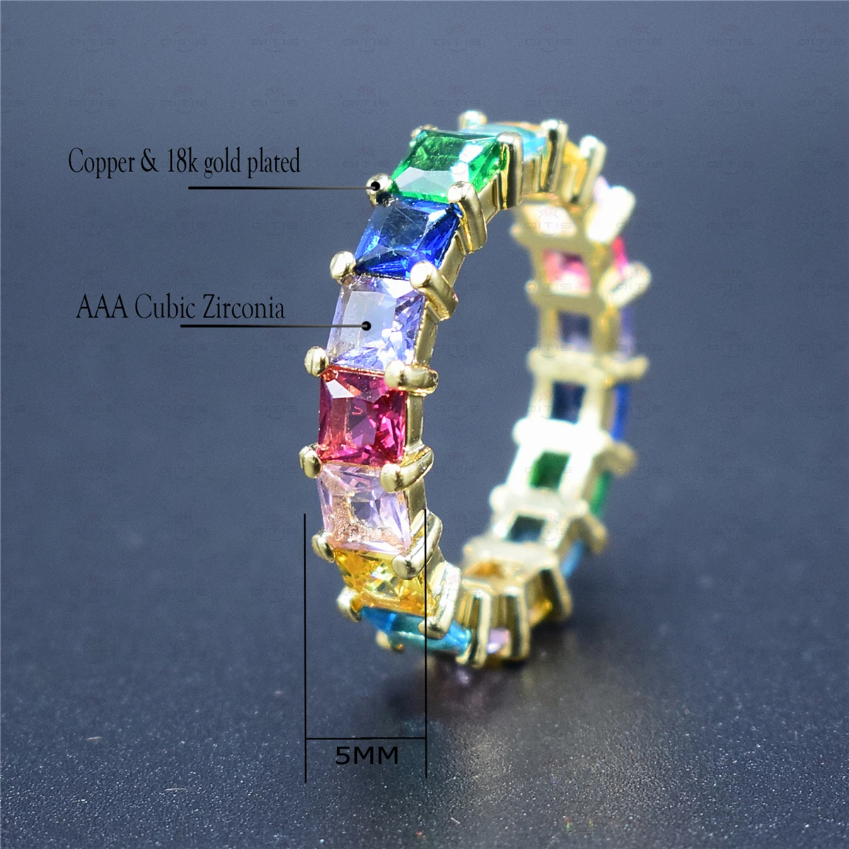 Название: женские кольца из меди с фианитами радуги