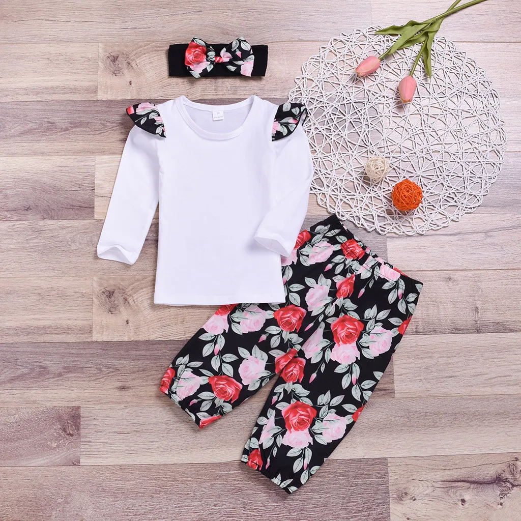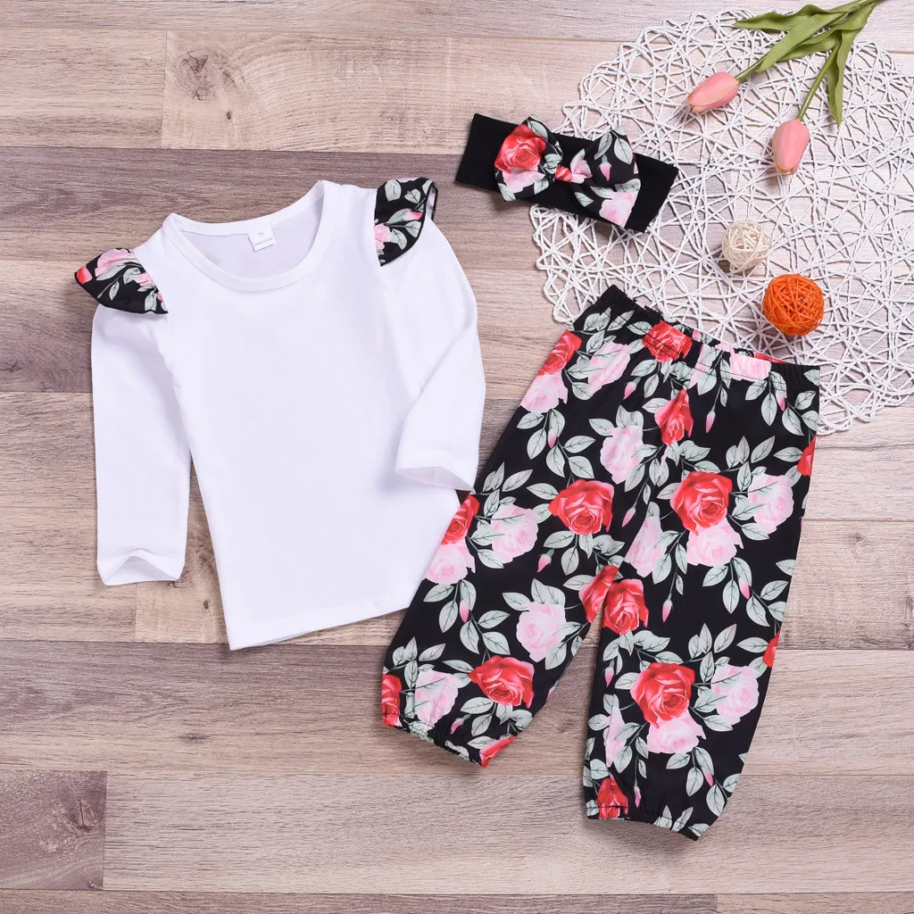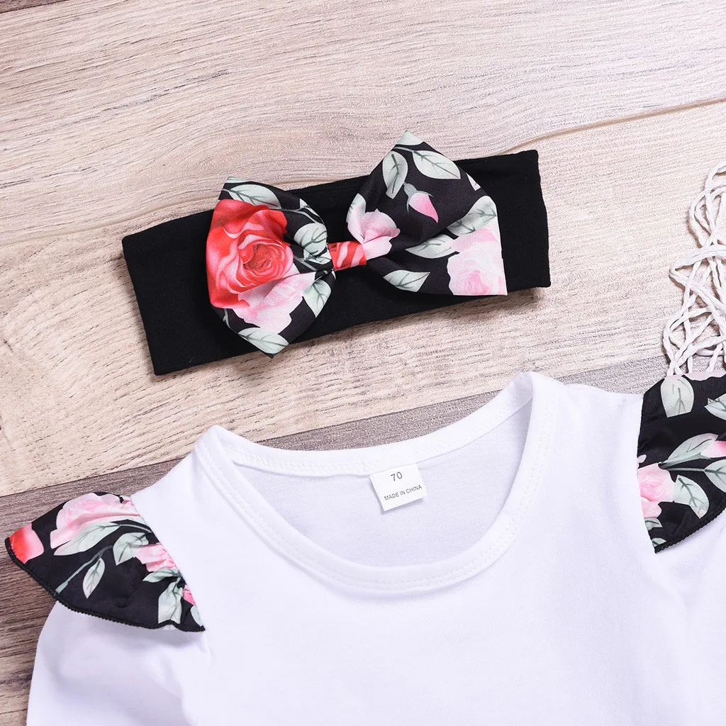 Костюм для маленьких девочек и малышей, комбинезон с длинными рукавами и принтом, Халат + брюки + повязка на голову, костюм, модная, маленькая, свежая одежда, 5