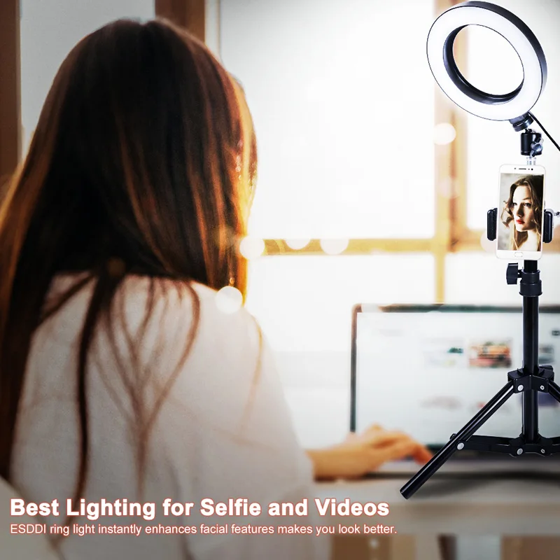 Светодиодный кольцевой светильник для селфи 3 цвета с регулируемой яркостью и держателем для телефона