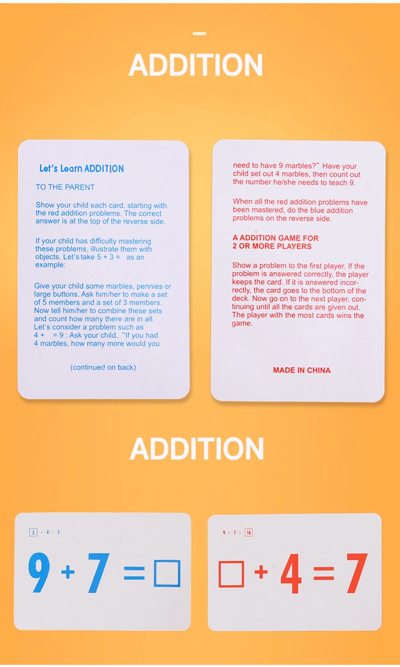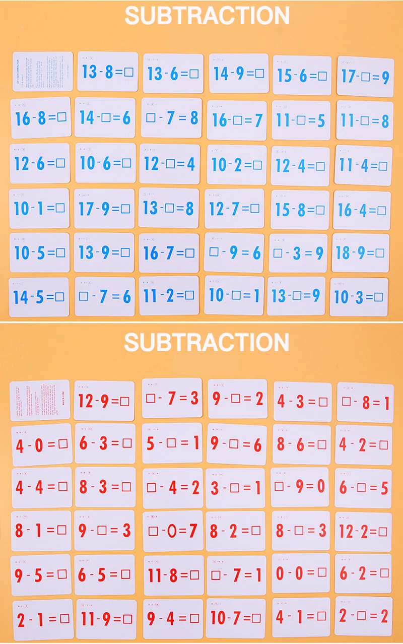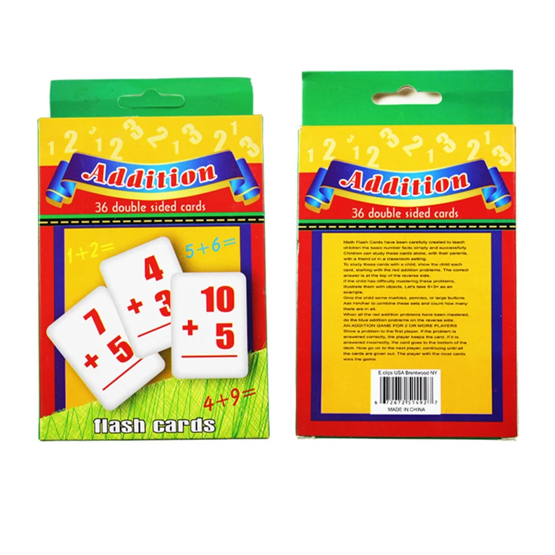 Функция: Дети раннего образования Арифметическая операция: сложение деление вычитания Подходит для детей 3-12 лет Материал: Бумага Цвет: как показано Размеры: Approx.7.8 * 11,7 см Количество: 144 шт. Комплектация: 1 Набор обучающих карт (4 шт.) Обратите внимание: Замеры сделаны вручную, поэтому возможны 0,3-1 см в связи с тем, что измерения выполнены вручную. Из-за различий в настройках мониторов цвет может отличаться от цвета на изображении.