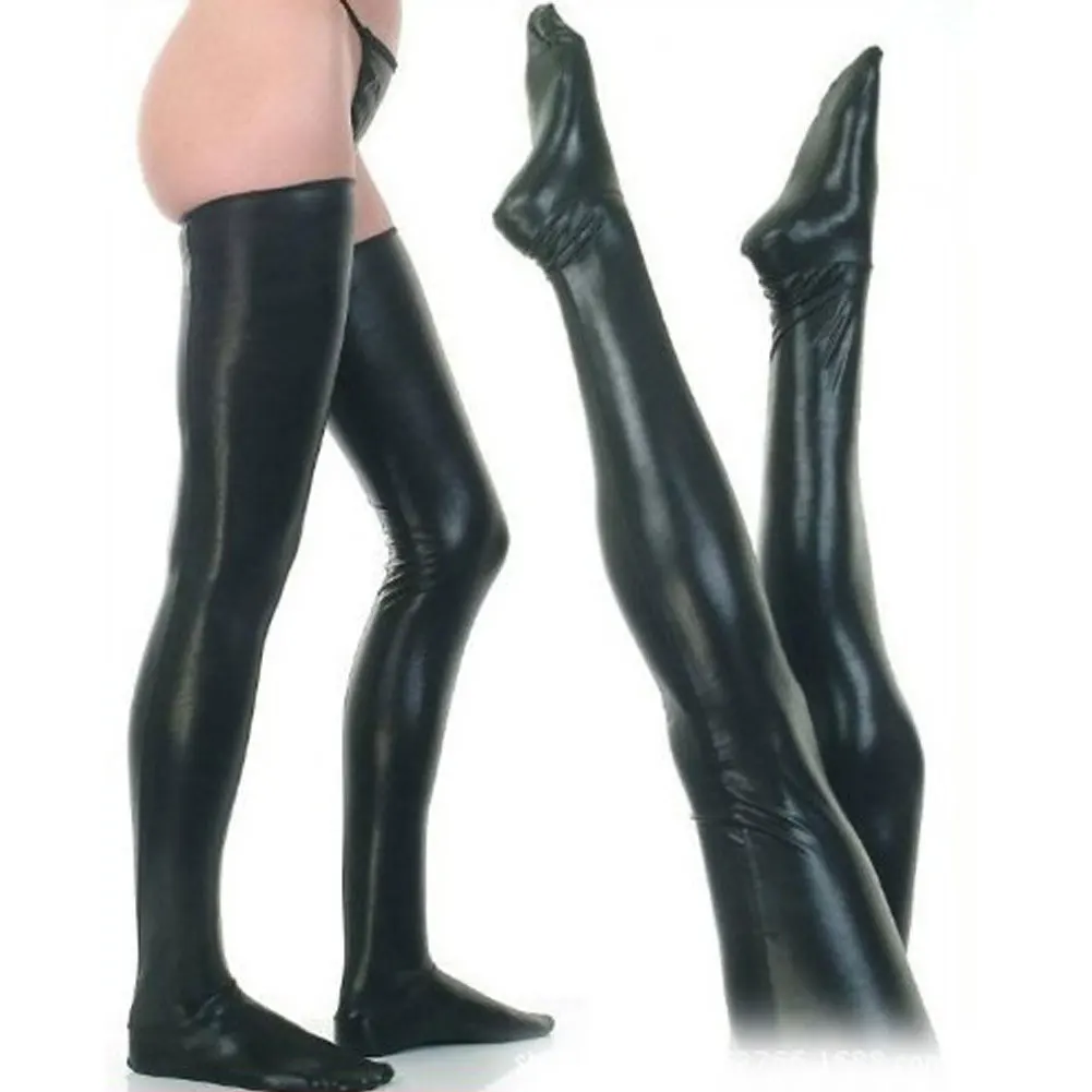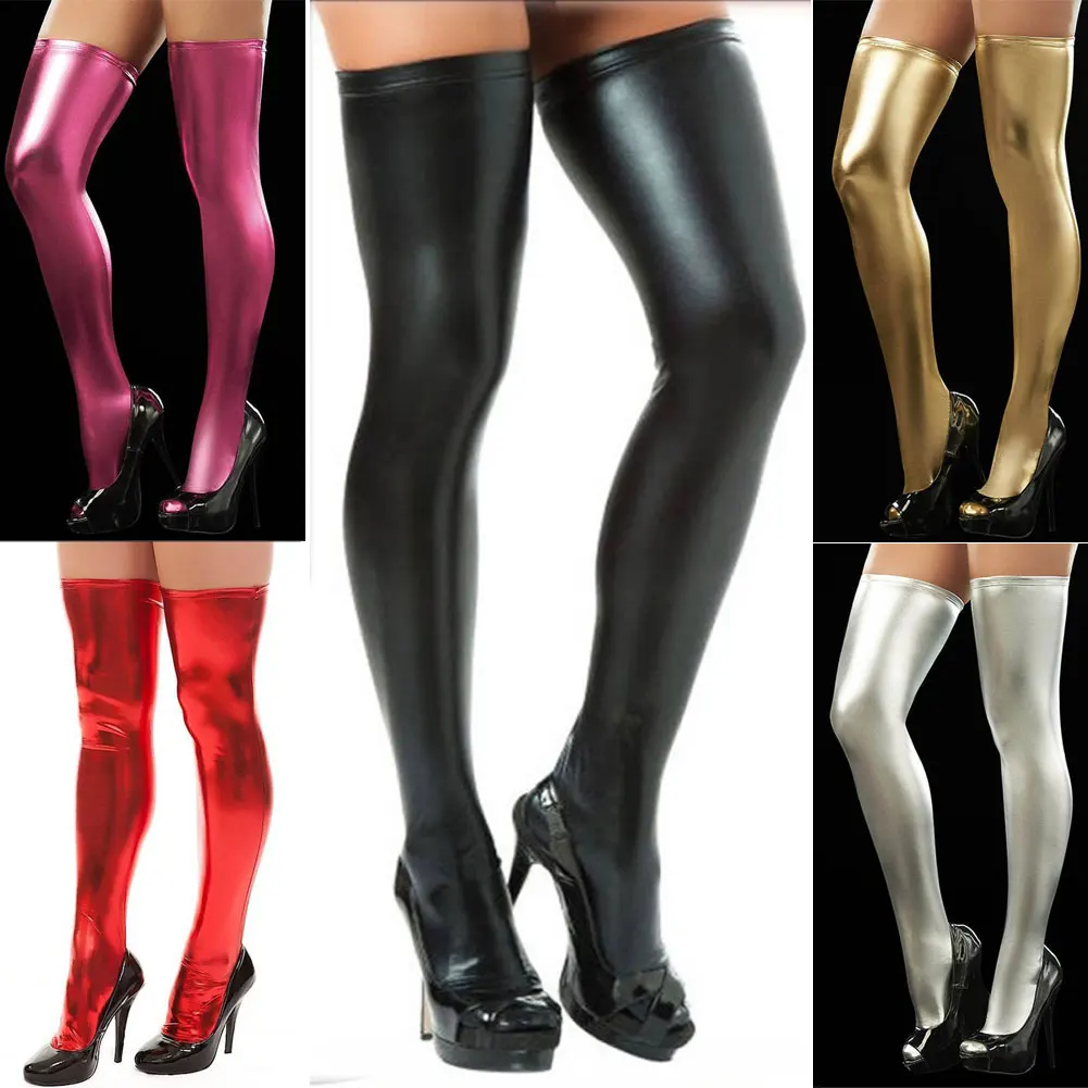 Новинка в моде, женские сексуальные чулки выше колена из искусственной кожи, высокие чулки, мокрый вид, носки
