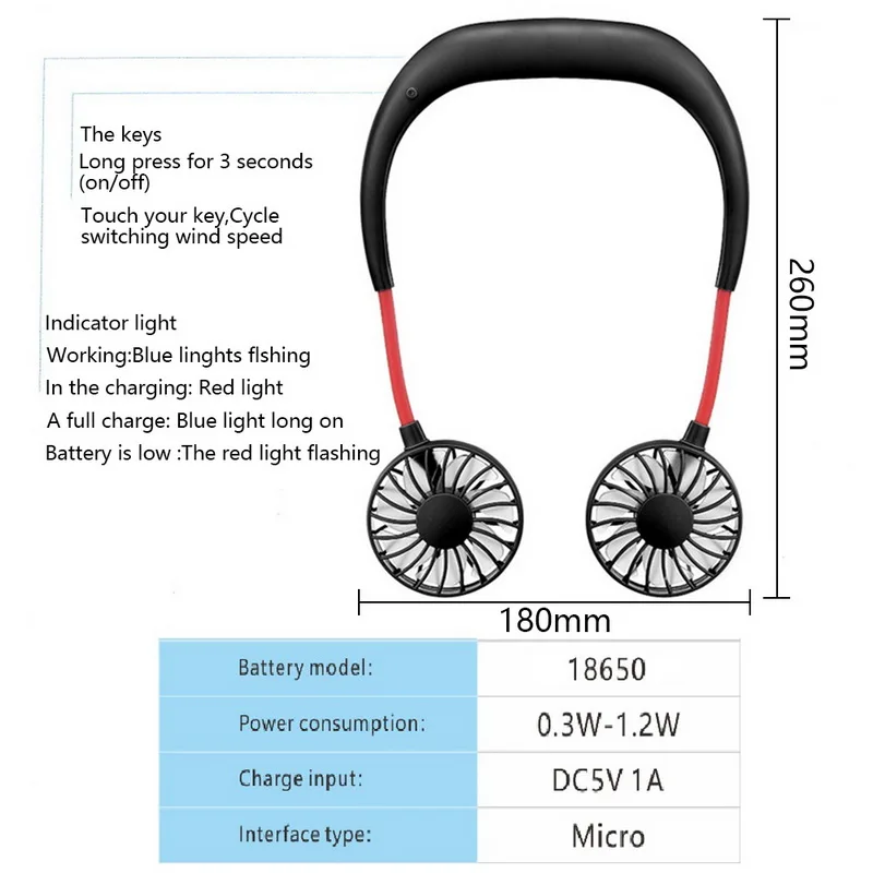 * Дизайн без рук: этот вентилятор предназначен для наушников, чтобы свободные руки где угодно. Подвешивайте шею и Берите его всюду.