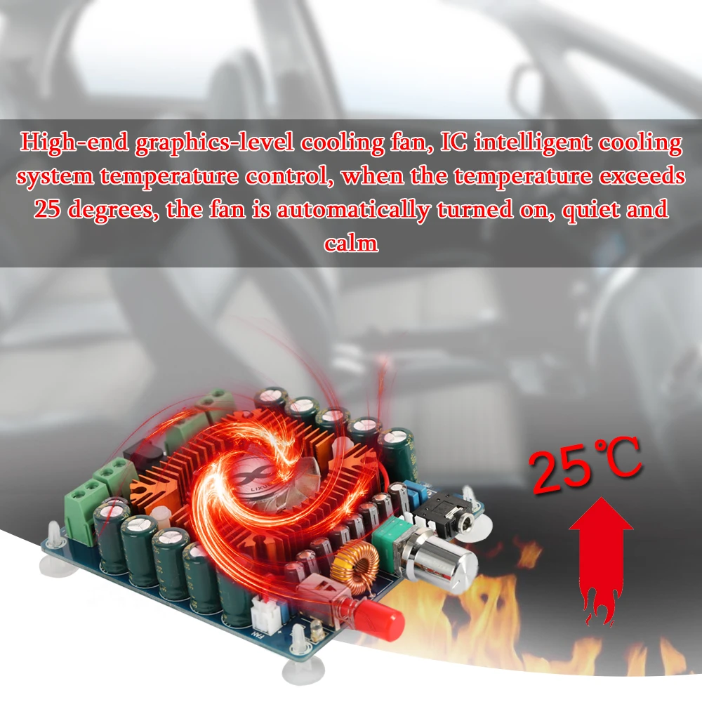 Горизонтальная посылка TDA7850, система воздушного охлаждения, даже если полная нагрузка только теплая, бесплатный охлаждающий вентилятор начинает работать, защелкивая слышать, как вентилятор работает почти бесшумно.