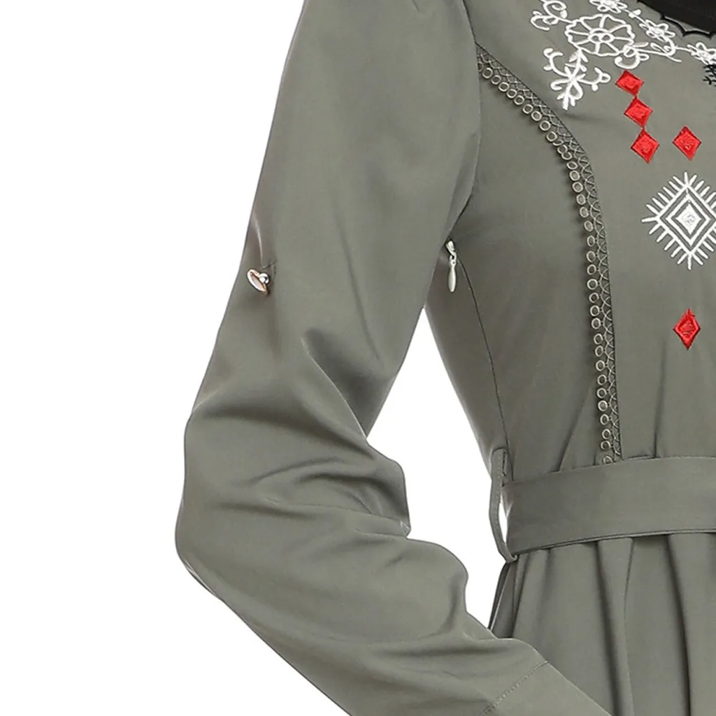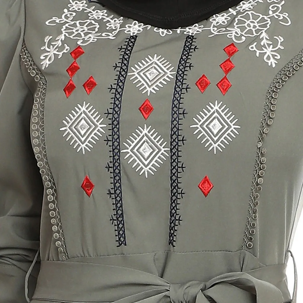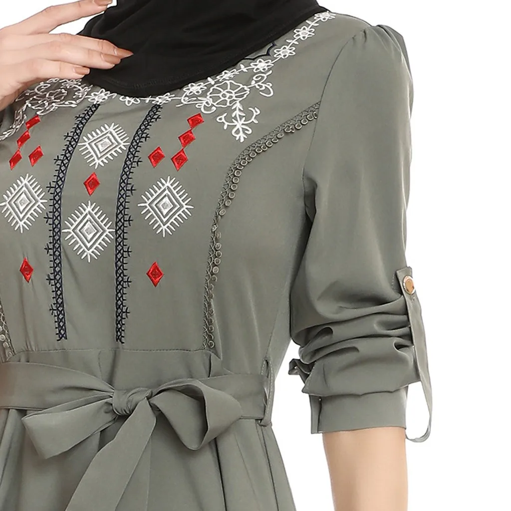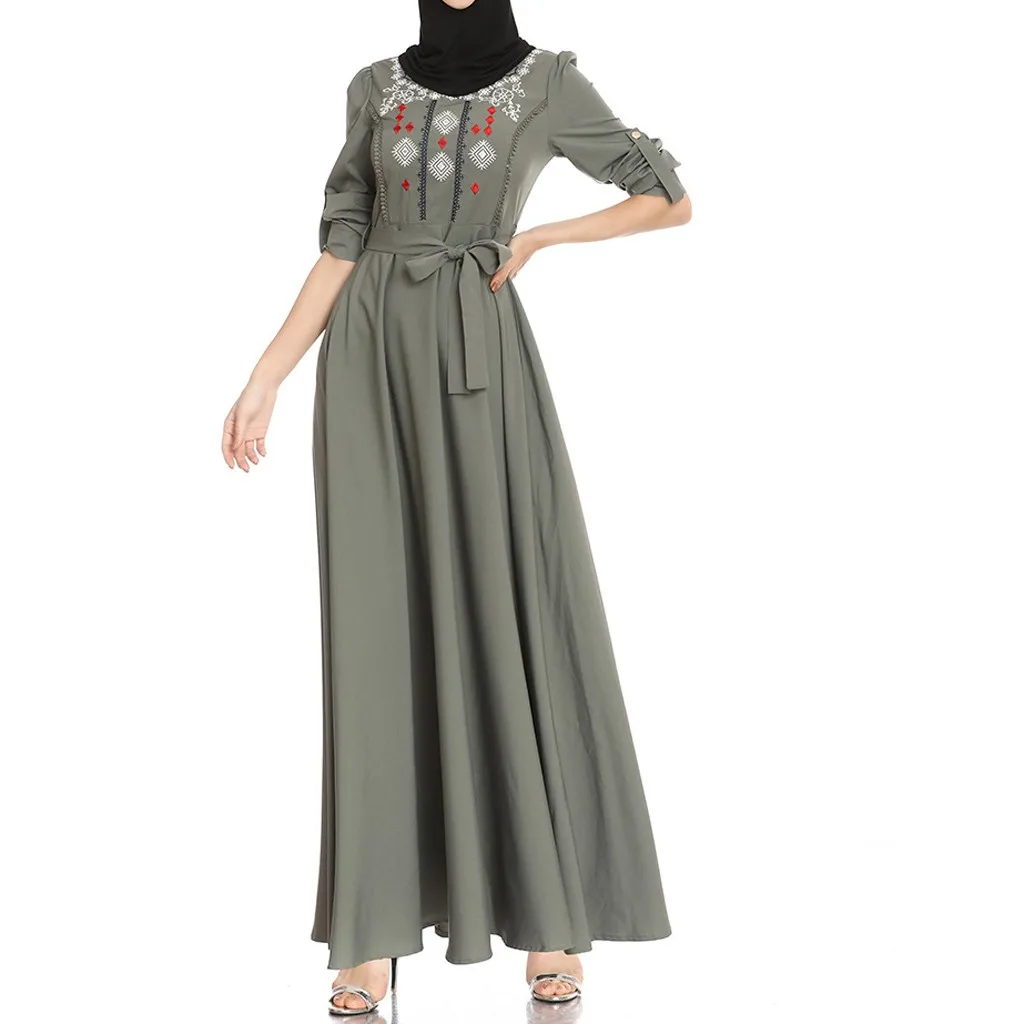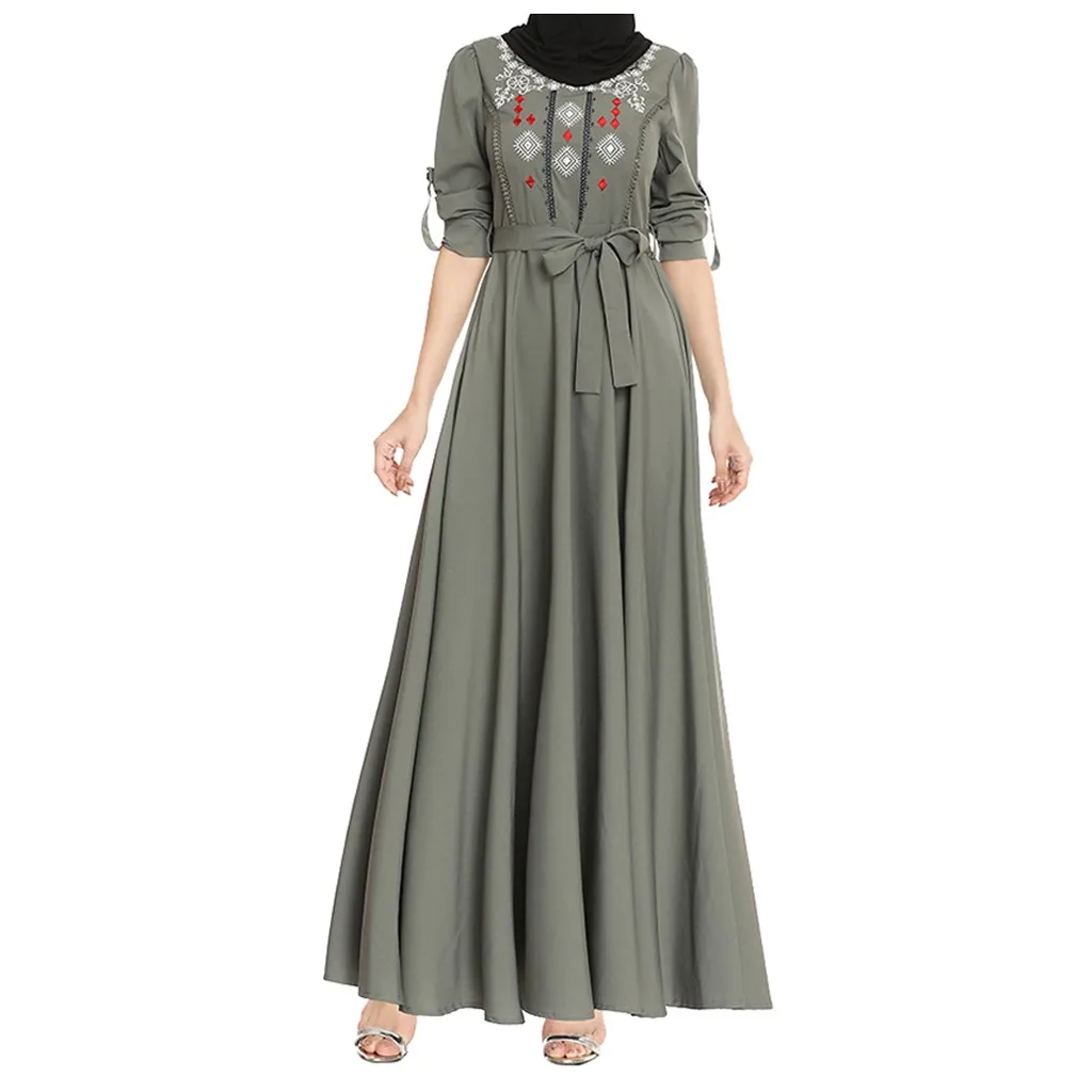 Женское мусульманское платье с вышивкой, свободное платье с длинным рукавом и круглым вырезом