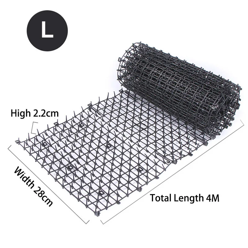 Особенности: 1. Избегайте кошек, собак и других животных, уничтоженных овощами, растениями и так далее. 2. Безопасное пластиковое решение для копки кошек и собак. 3. Пластиковый шип будет держать кошек подальше, но не вредит кошкам. 4. Коврик можно также обернуть вокруг полюсов или деревьев, чтобы не дать животным восхождения. 5. Коврик для кошек широко подходит для сада, собаки, балкона, крыши, фермы и так далее. Спецификация Тип изделия: сетка против котов Цвет: черный Размер: S: 49 см * 13 см М: 200 см * 28 см L: 400 см * 28 см Материал: пластик Упаковка включает: 1 * Анти-кошачья сеть