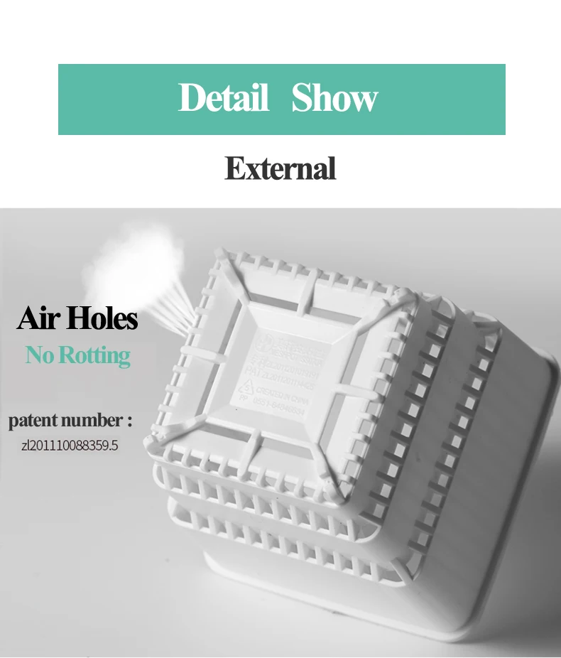 Полипропилен (полипропилен), пищевое сырье, Нетоксично и без вкуса. Особенности Наша фабрика специализируется на исследованиях, производстве, маркетинге бассейна для контроля за корнями, которая направляет рост корней и предотвращает гниение корней из-за слишком большого количества воды; которая более проницаема для воды и воздуха и регулирует флору. Meshpot funational Garden Pot получает 7 национальных патентов, вплоть до стандарта ROHS Европейского союза, имеет сертификацию SGS. Мы специализируемся на изготовлении горшков с пищевыми стандартами. Подходит для наружной входной двери, гостиной, окна спальни, небольшого парка, офиса и рабочего пространства и многоцелевого использования. В комплекте По вашему заказу