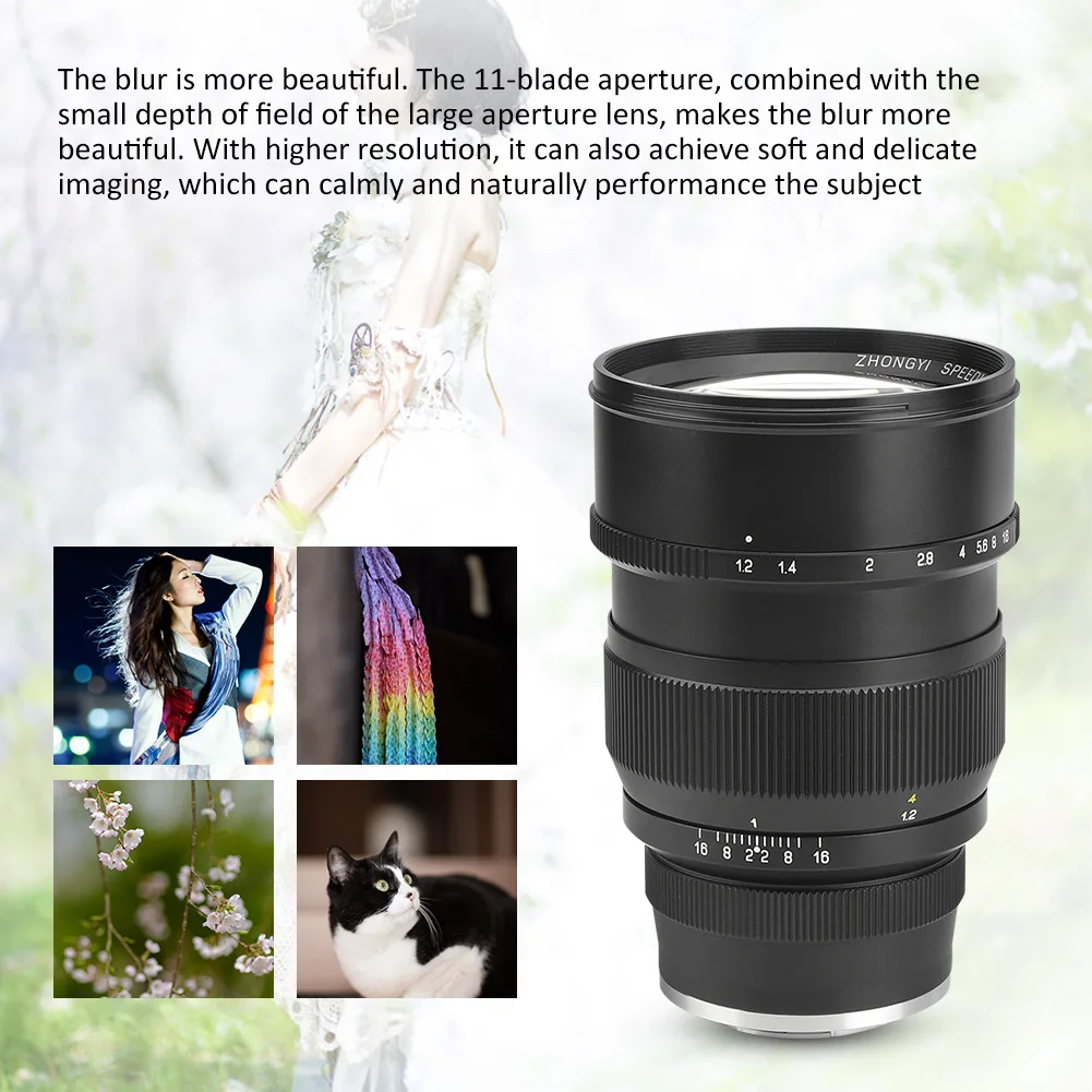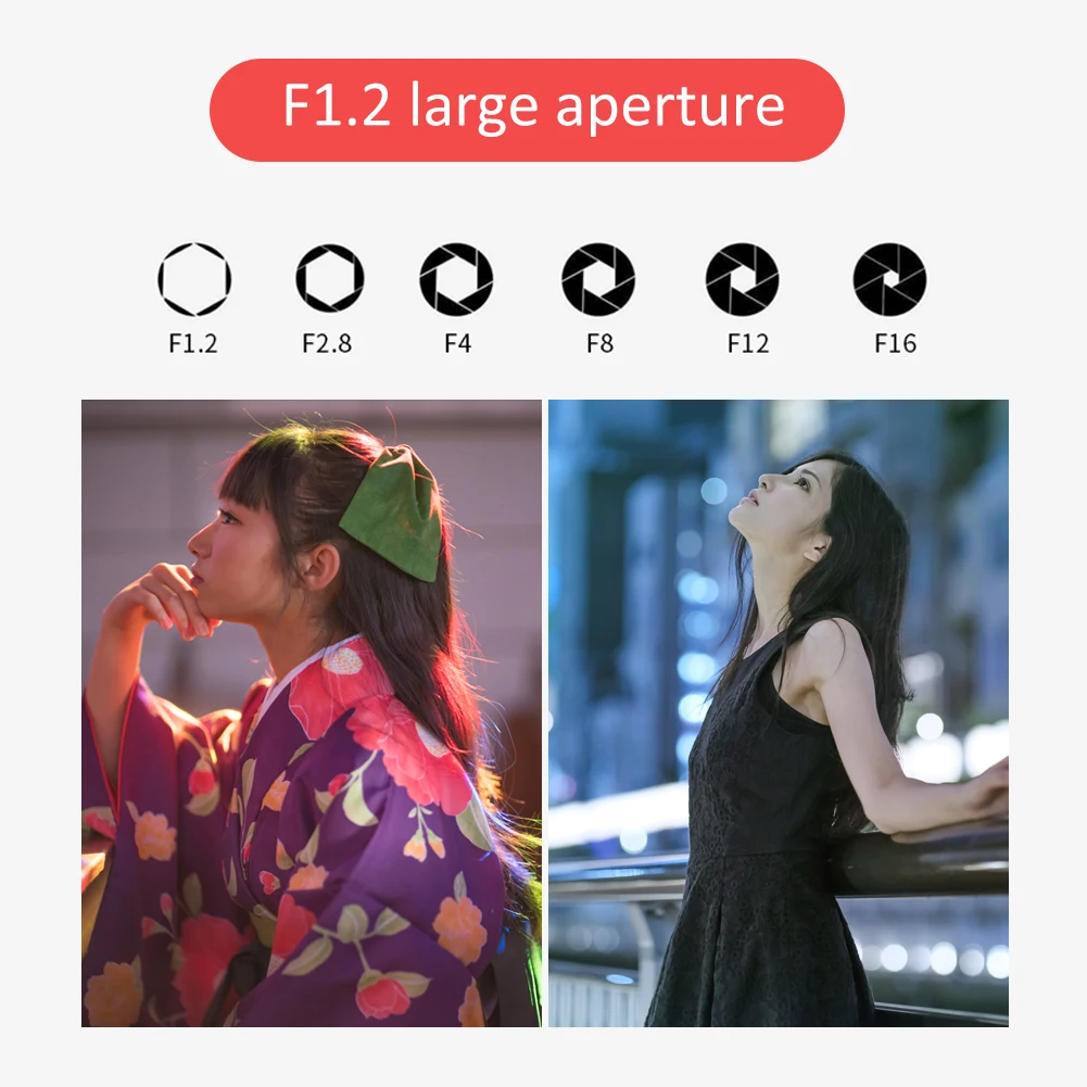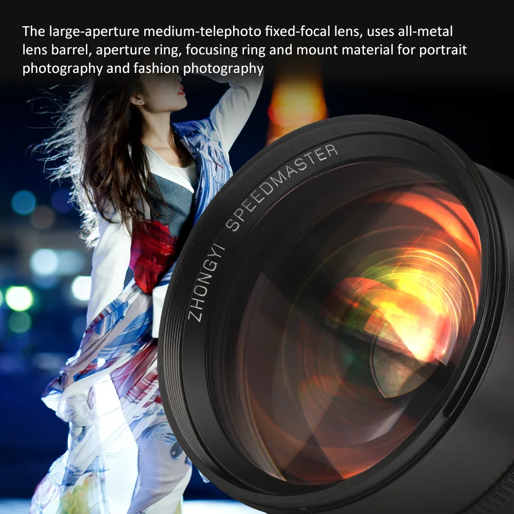 1. Светосильные средне-телеобъектив с фиксированным фокусным расстоянием, использует Цельнометаллический корпус объектива, кольцо диафрагмы, фокусировочное кольцо и крепление материал для портретной съемки и модной фотографии.