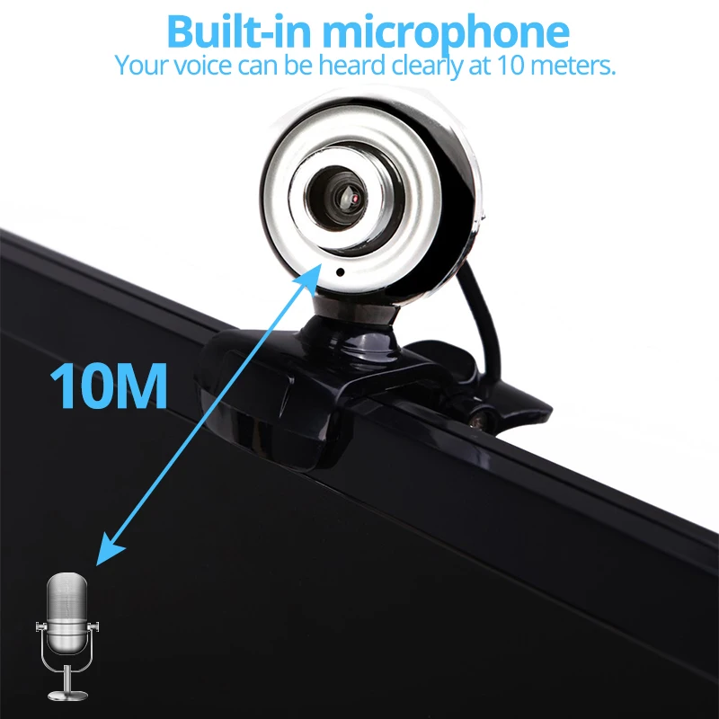 Высокое качество и 100% новый бренд. Автоматическая экспозиция и автоматический баланс белого. Автоматическая регулировка яркости и компенсация цвета. Поворотная головка с поворотом на 360 градусов для регулировки свободного угла. Высокое разрешение и Воспроизведение изображения истинного цвета в сетевой конференции и видеочате. Подключи и играй, не требуется программное обеспечение или драйверы для установки. Предназначен для ноутбуков и настольных компьютеров, ноутбуков, компьютеров с usb-портом. Технические характеристики Датчик изображения: CMOS Разрешение: 16M мегапикселей Частота кадров: 30 кадров/секунду Поддержка: MSN, Skype, Windows Live Messenger и Yahoo Video Messenger Системные требования: Windows ME/2000/XP/Vista (32-бит) /Win7/8/9/10