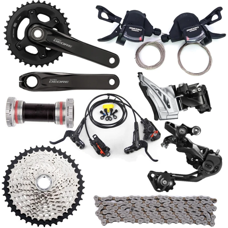 Shimano Deore M6000 2x10-Speed Groupset Содержит: Shimano Deore SL-M6000 рычаг переключения передач 2/3x10-Speed Shimano Deore FC-M6000 коленчатый набор (38-28T 36-26T)(170 мм 175 мм) Передний переключатель Shimano Deore FD-M6025-H Shimano Deore RD-M6000 задний переключатель SGS CS-HG500-10 кассеты Shimano Deore 11-42T Нижний Кронштейн Shimano Deore SM-BB52 (BSA 68/73 мм) Цепь для CN-HG54 Shimano Deore Shimano Deore BR-M6000 тормоза (смола) пара Shimano Deore FC-M6000-2 коленчатый набор Shimano Deore FC-M6000-2 crankset, концепция Hollowtech II впервые используется на уровне Deore, что обеспечивает оптимальную связь между прочностью кривошипов, жесткость оси и вес. Алюминиевая рукоятка стала стройнее, чем у предыдущей модели, и визуально напоминает FC-M7000 SLX, введенную годом ранее. Deore FC-M6000-2 по-прежнему совместим с 10 скоростными цепями. Две цепные кольца сидят на ассиметричном пауке с кругами болтов 96/64 мм, которые, в свою очередь, были захлестнуты черепами из более дорогих групп. Использование: тропа, все горы, пересекающиеся страны Серия: Deore M6000 Скорость: 2x10-speed Цепная цепь: 26-36T, 28-38T Длина рукоятки: 170 мм, 175 мм Линия цепи: 48,8 мм Q фактор: 176 мм Диаметр оси: 24 мм Цепь (рекомендуется): HG-X 10 скоростей (например, g. CN-HG54) Особенности: Эффективная передача энергии Hollowtech II 70 ° 4-рычажная конструкция Оптимизированное передаточное число для верховой езды Плавное переключение поддерживает скорость на требовательной местности Технология: Hollowtech II Что имеет значение, так это общий баланс коленчатого набора. Что касается всего коленчатого набора, очень важно оптимальное соотношение прочности рукоятки, жесткости оси, положения подшипника и других особенностей. При разработке коленчатого набора, общий баланс всех отдельных элементов был тщательно принят во внимание для обеспечения максимальной стабильности. Внешний подшипник: большинство корпусов нижнего кронштейна 68 мм позволяют установить ось Hollowtech II с 24 мм, чтобы подшипник находился вне рамки для лучшего распределения веса и большей стабильности. Высококачественные точные уплотнения: набор Hollowtech II также имеет высококачественные точные уплотнения в области хранения, чтобы продлить срок службы и поддерживать отличную эффективность вращения в долгосрочной перспективе. Ось и подшипники диаметром 24 мм обеспечивают оптимальный баланс коленчатого набора и оптимальную передачу мощности привода на велосипед. Передний переключатель Shimano Deore FD-M6025 Передний переключатель Shimano Deore FD-M6025 обеспечивает плавное изменение цепного кольца в 2x10-speed MTB drive. FD-M6025 доступен с обычной конструкцией вниз-качели и сверху-качели, а также контролем поезда снизу или с обеих сторон. Использование: Все горы, пересекающиеся страны Серия: Deore M6000 Скорость: 2 раза (в сочетании с 10 раз) Угол бензопилы: 66-69 ° Линия цепи: 48,8 мм (зажим) Размер цепного кольца (макс.): 34-38 зубьев Емкость: 10 зубьев Кабель маршрутизации: вниз тянуть, двойной тянуть Движение: вниз качели, Топ качели Крепление: высокий зажим Диаметр зажима: 34,9 мм Особенности: Плавное переключение Эффективная маршрутизация Стабильная функция на полностью подвесных велосипедах Shimano Deore RD-M6000 задний переключатель Задний переключатель Shimano Deore RD-M6000 имеет технологию демпфирования Shadow +, которая предотвращает пощечину цепи и снижает вероятность падения цепи. Он имитирует плавные, точные и высокоэффективные операции переключения. Использование: тропа, все горы, пересекающиеся страны Серия: Deore M6000 Скорость s: 10 скоростей Вместимость: 41 зуб (