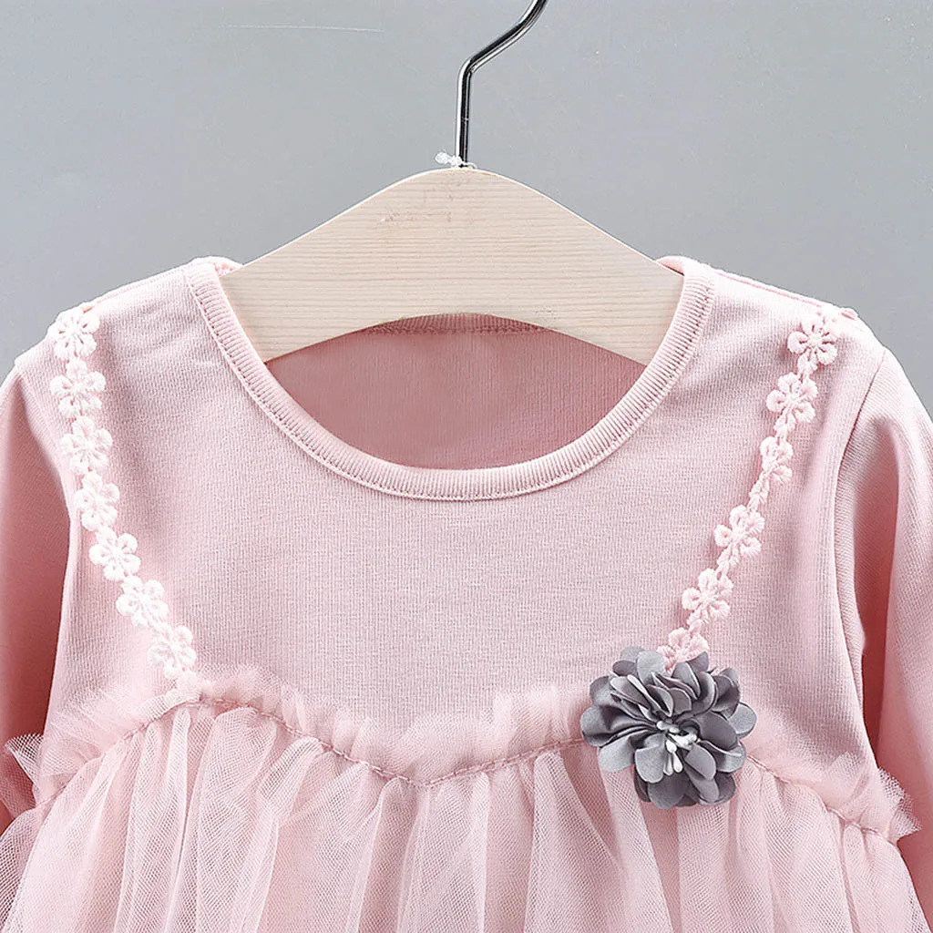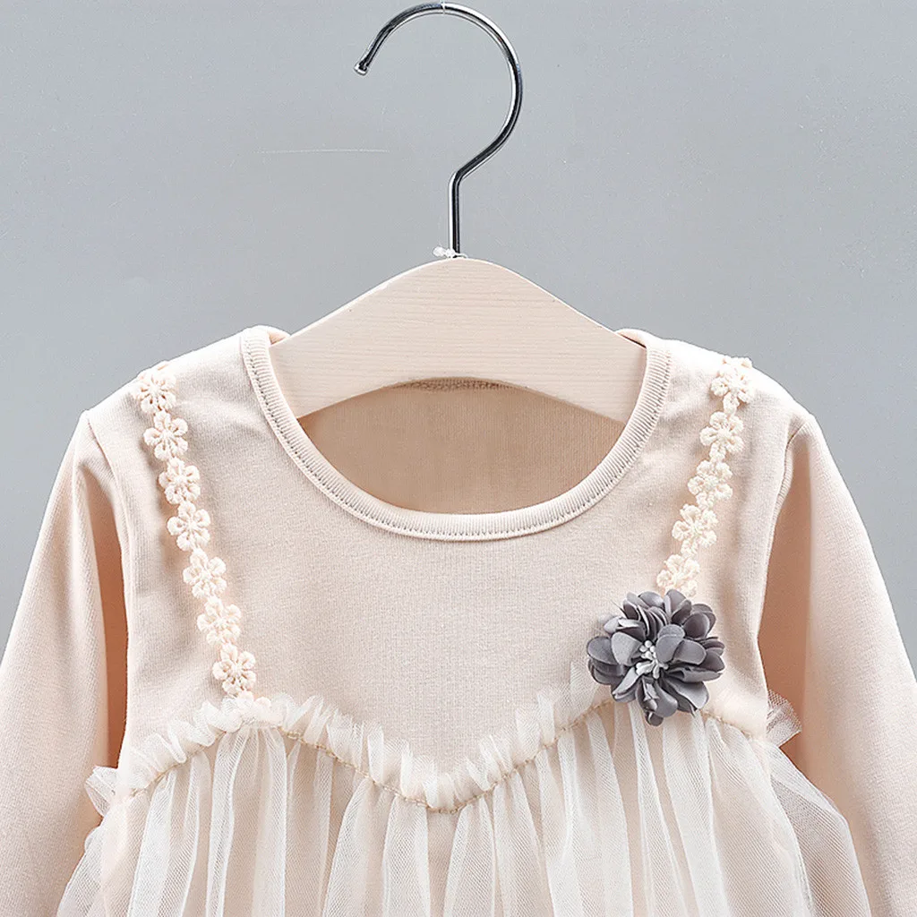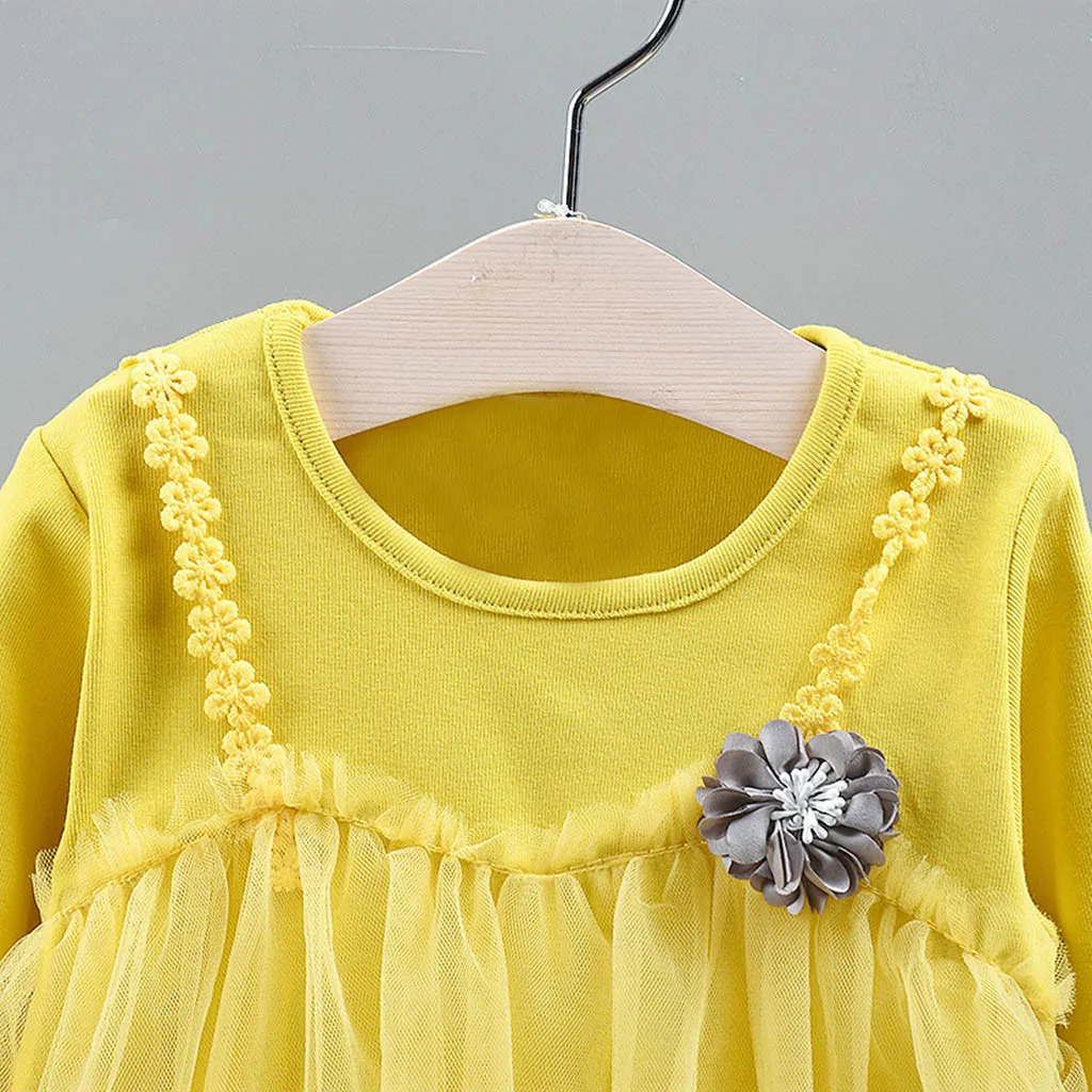 Осенние корейские платья для девочек, маленькие, свежие, детские, с длинными рукавами, с цветочным рисунком, однотонные, сетчатые, имитация двух частей, платье, одежда 50 *
